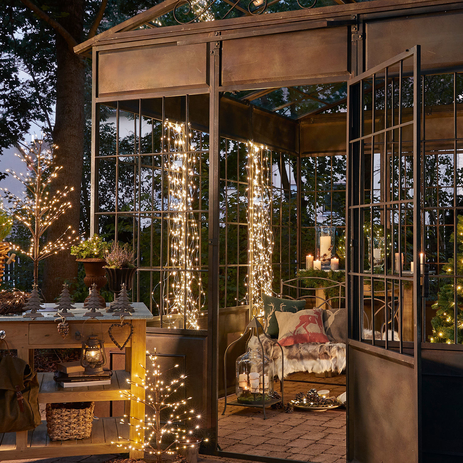 Was gibt es Schöneres, als in der dunklen Jahreszeit den Außenbereich in ein funkelndes Lichtermeer zu verwandeln! Und es müssen nicht immer die Tannenbäume sein, die im Garten in Szene gesetzt werden. Diese Lichterkette wartet mit 480 LED-Lämpchen auf und ist mit der Zuleitung von ca. 5 Meter vielseitig einsetzbar.