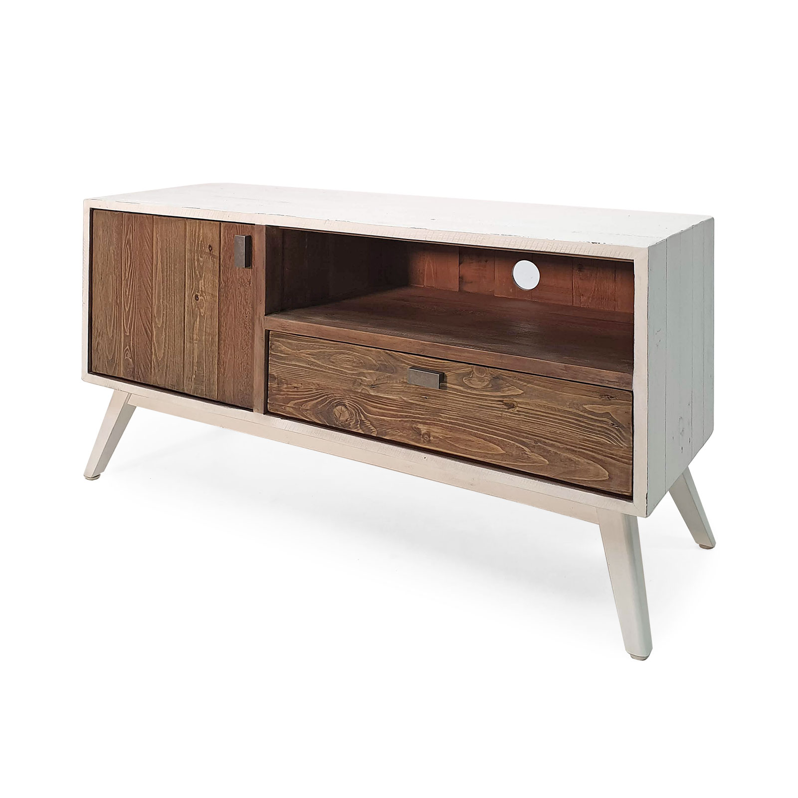 Lowboard Weiß Braun Massivholz 120 cm Breit