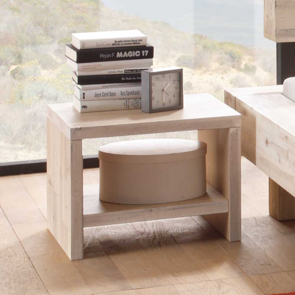 Massivholz Nachttisch in Weiß Akazie
