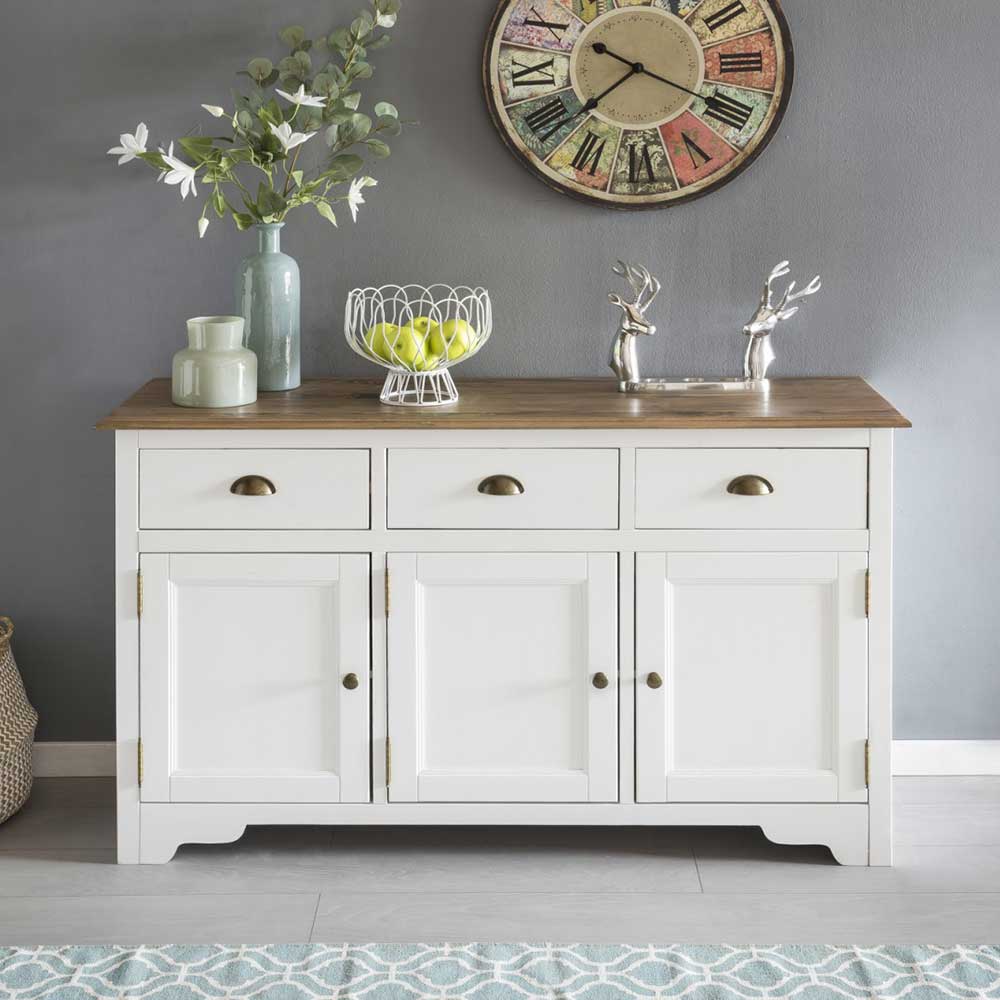 – Sideboard Weiß und Kieferfarben – Wohnzimmerschrank Kiefer Massivholz – Kommode Landhausstil – Sidebord Breite: 140 – Küchenkommode Höhe: 85 – Kommode holz Tiefe: 45 – Kommode massivholz Mit drei Schubladen und mit Metallauszug – Wohnzimmer schrank Schrank-Tür: mit Drehtüren – Wohnzimmer kommode 3-türig, Innenaufteilung: mit Einlegeböden – Kommode massiv Ohne Beleuchtung – Kommode echtholz Zerlegt, zum leichten Selbstaufbau (Montageanleitung liegt bei) – Echtholz kommode Sockelgestell aus Massivholz – Große kommode Massivholz Oberfläche und Lackiert – Esszimmer kommode Metallgriffen – Kommode vollholz Rechteckige Form – Massivholzkommode Massivholz TürInformationen zur Lieferung:Die Zustellung dieses Produktes erfolgt per DPD. Sollten Sie bei der Erstzustellung nicht angetroffen werden, hinterlässt der Zusteller in Ihrem Briefkasten eine Benachrichtigungskarte mit dem zweiten Liefertermin, den Lieferdaten sowie Kontaktinformationen. Somit haben Sie die Möglichkeit, sich bezüglich des Empfangs Ihrer Ware mit DPD in Verbindung zu setzen. Die Zustellung erfolgt maximal 3x, sofern die beiden ersten Termine erfolglos bleiben sollten. Die Auslieferung erfolgt von Montags bis Freitags. Eine Zustellung an Sonn- und Feiertagen ist nicht möglich.