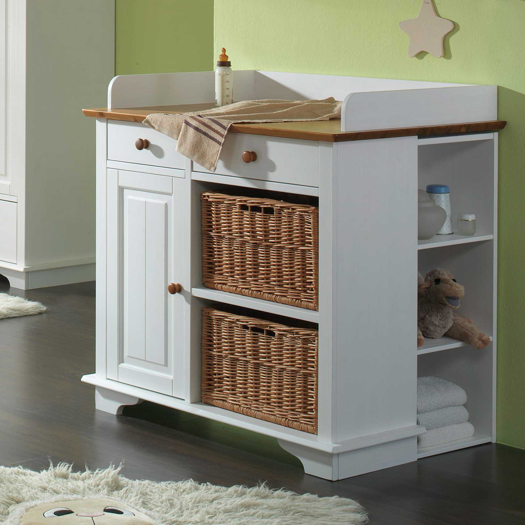 – Wickelkommode Weiß – Wickeltisch Kiefer Massivholz – Kiefertisch Breite: 102 – Babywickelkommode Höhe: 107 – Tiefe: 77 – Mit zwei Schubladen und mit Metallauszug – Schrank-Tür: mit Drehtüren – 1-türig, Innenaufteilung: mit Einlegeböden – Anschlag (Scharniere) der Türen: Links (Rechtsseitig zu öffnen) – Ohne Beleuchtung – Zerlegt, zum leichten Selbstaufbau (Montageanleitung liegt bei) – Sockelgestell aus Massivholz – Massivholz Oberfläche und Lackiert – Holzgriffen – Rechteckige Form – 2 Weidenkörbe Varianten – 001: Kommoden Aufsatz: Wickelaufsatz – 002: Kommoden Aufsatz: Wickelaufsatz & 1 Anstellregal – 003: Kommoden Aufsatz: Wickelaufsatz & 2 Anstellregale