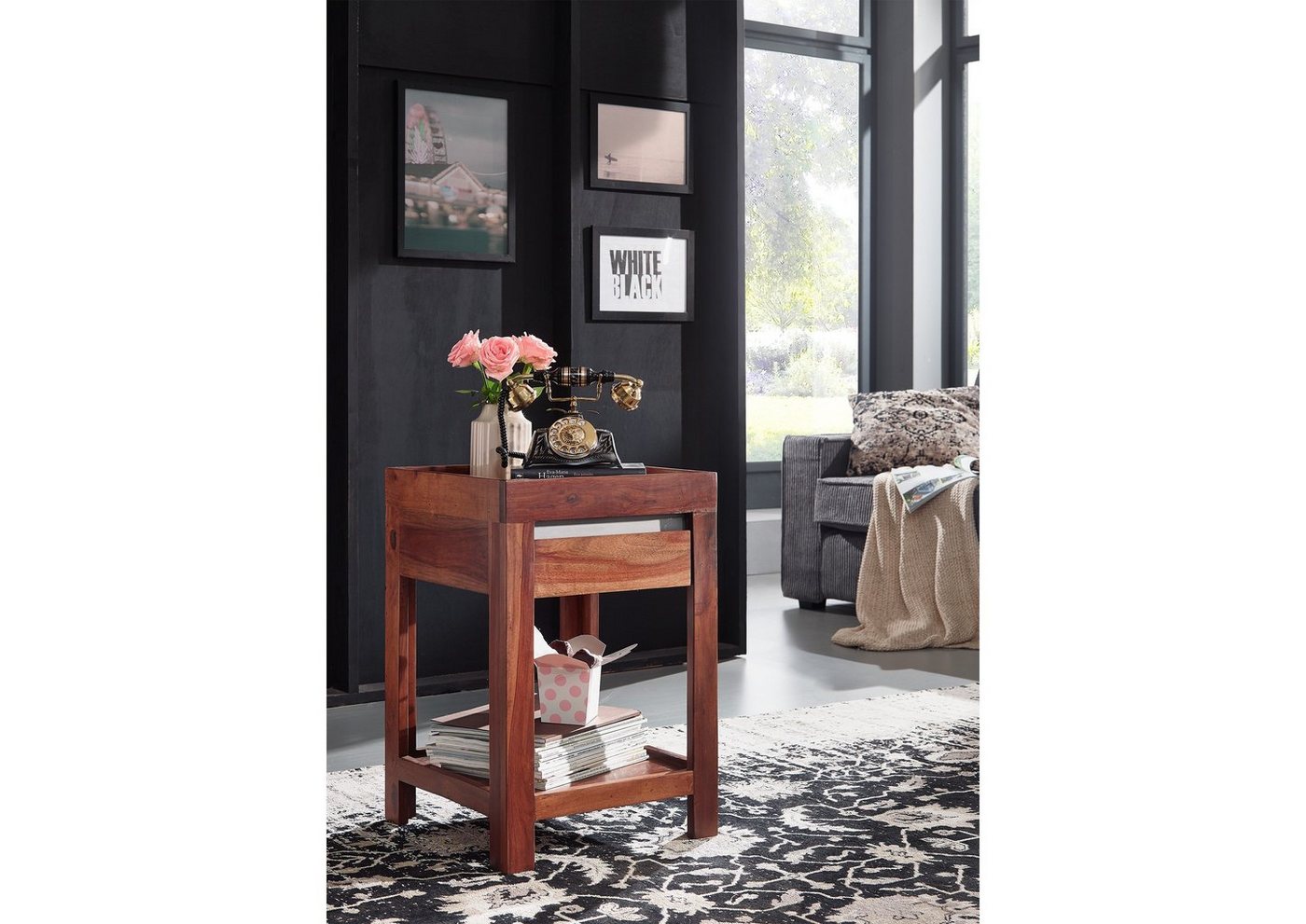 Beistelltisch Sheesham 40x40x60 noble unique lackiert SYDNEY #136Produkt: Beistelltisch Serie: SYDNEY Breite: 40 cm Tiefe: 40 cm Höhe: 60 cm Gewicht: 11 kg Holzart: Sheesham / Palisander, vollmassiv Material: Massivholz Farbe: noble unique lackiert Das Produkt wird montiert geliefert.Produkt: Beistelltisch (Modern) Serie: SYDNEY Breite: 40 cm Tiefe: 40 cm Höhe: 60 cm Gewicht: 11 kg Holzart: Sheesham / Palisander, vollmassiv Material: Massivholz Farbe: noble unique lackiert Das Produkt wird montiert geliefert.Versand erfolgt frei Bordsteinkante. moderner Beistelltisch aus Sheesham (indischer Palisander)praktischer Tisch mit 1 Ablagefläche, 1 Regalfläche und 1 Schubladeedler Look durch ausdrucksstarkes Holzbild