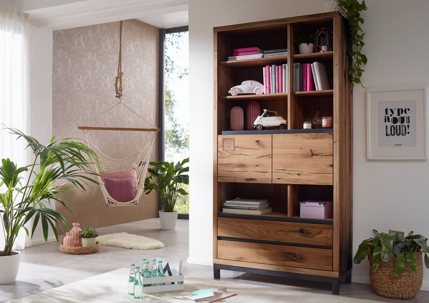 Bücherregal Wildeiche 100x40x200 tabacco brown geölt VILLANDERS #338Produkt: Regal (Modern) Serie: VILLANDERS Breite: 100 cm Tiefe: 40 cm Höhe: 200 cm Gewicht: 106 kg Holzart: Wildeiche, vollmassiv Material: Massivholz Farbe: tabacco brown geölt Versand erfolgt frei Bordsteinkante.- Hirnholz-Element- Soft-Close-System für Schubladen und Türen- moderne Metall/Holz Kombination- Griffleisten mit Metall hinterlegt- Hochwertige Metallrahmen Konstruktion inkl. Füße- Unikate Rissoberfläche- Erhältlich in 3 Farben, Natur, Bianco (hell), Tabacco (dunkelbraun)- Möbel sind aufgebaut /Tische und Bänke müssen Beine montiert werden- 2 Türen- 2 Schubladen- 4 große Fächer – 4 kleine Fächer