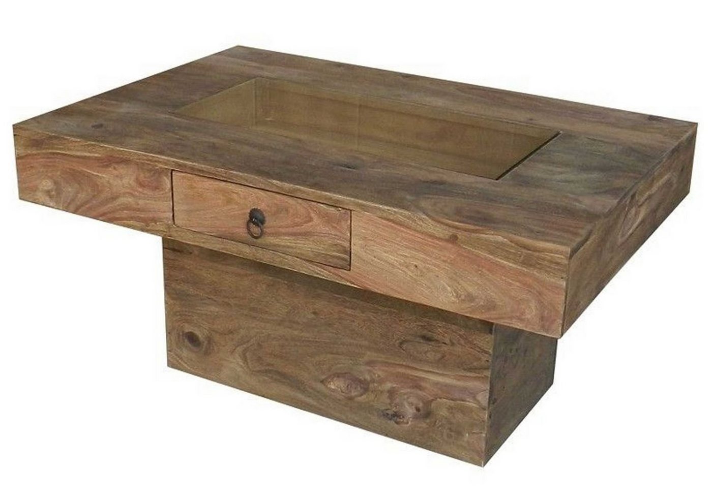 Couchtisch Sheesham 90x60x46 grau geölt LEEDS #20 —Produkt: Couchtisch Serie: LEEDS Breite: 90 cm Tiefe: 60 cm Höhe: 46 cm Gewicht: 31 kg Holzart: Sheesham / Palisander, vollmassiv Material: Massivholz Farbe: grau geölt Versand erfolgt frei Bordsteinkante.Leeds Couchtisch aus Palisander/Sheesham von Massivmoebel24.de Ein weiteres exquisites Möbelstück im Landhausstil der Serie LEEDS ist zweifellos dieser Couchtisch: obwohl schlichtes und geradliniges Design im Vordergrund stehen, verbirgt dieser Tisch ein exklusives Detail. In der Tischmitte ist der Boden vertieft und mit einer Glasplatte abgedeckt. Mit dieser Finesse sind der Dekorationsmöglichkeit keine Grenzen gesetzt. Ob die verglaste Vertiefung schlicht und natürlich belassen wird, je nach Jahreszeit mit Frühlingsblumen oder Herbstlaub dekoriert wird oder durch passende Accessoires der gemütliche Landhausstil unterstrichen wird – die Möglichkeiten diesem Tisch Ihren eigenen Stil zu verleihen bleiben ganz und gar Ihnen überlassen. Aber auch ohne diverse Verzierungen besticht dieser Tisch durch seine exakte Verarbeitung des Rohstoffes Sheesham Palisander, eine den Edelhölzern zugehörigen Hartholzart. Sheesham Palisander tritt bei der Möbelerzeugung immer mehr in den Vordergrund, da es den Qualitätsanspruch, der an Echtholzmöbel gestellt wird, bestens erfüllt. Die effektvolle Maserung des Palisander tut ein weiteres, um jedem Stück eine individuelle Note zu geben. Keine natürliche Maserung gleicht vollkommen einer zweiten, sodass jedes Echtholzmöbelstück seine eigene Handschrift trägt und somit zum Unikat wird. Zur täglichen Reinigung verwenden Sie am besten ein trockenes oder nebelfeuchtes Tuch. Wasser sollte wie bei jedem Echtholzmobiliar sehr sparsam eingesetzt werden. Die Glasplatte stellt eine Ausnahme dar und darf natürlich mit Glasreiniger gereinigt werden. Fallweise empfiehlt sich die Verwendung von Holzöl, um ein Austrocknen des Holzes zu verhindern und den ursprünglichen Glanz zu erhalten. Holzwachs überzieht die Oberfläche mit einer Schutzschicht und macht das Holz abweisend für Schmutz und Feuchtigkeit und erleichtert die Reinigung.