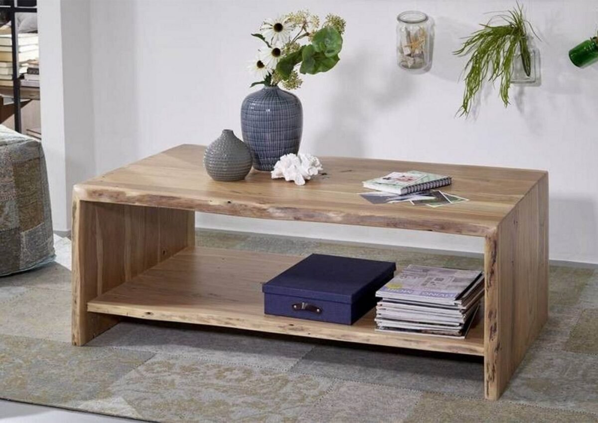 Couchtisch Akazie 120x70x45 natur lackiert PURE ACACIA #308Produkt: Couchtisch (Modern) Serie: PURE ACACIA Breite: 120 cm Tiefe: 70 cm Höhe: 45 cm Gewicht: 67 kg Holzart: Akazie, vollmassiv Material: Massivholz Farbe: Akazie natur lackiert Versand erfolgt frei Bordsteinkante.Zeitschriften, Knabbereien und Co.: All das hat auf dem integrierten Boden Platz, der sich unterhalb der Tischplatte befindet. Das macht diesen Couchtisch der Reihe PURE ACACIA nicht nur zu einem Hingucker, sondern auch zu einem funktionellen Begleiter. Mit seinem abwechslungsreichen Kantenbild und der schimmernden Lackierung ist der Sofatisch aus Akazie auch in Sachen Optik ein Schmuckstück.