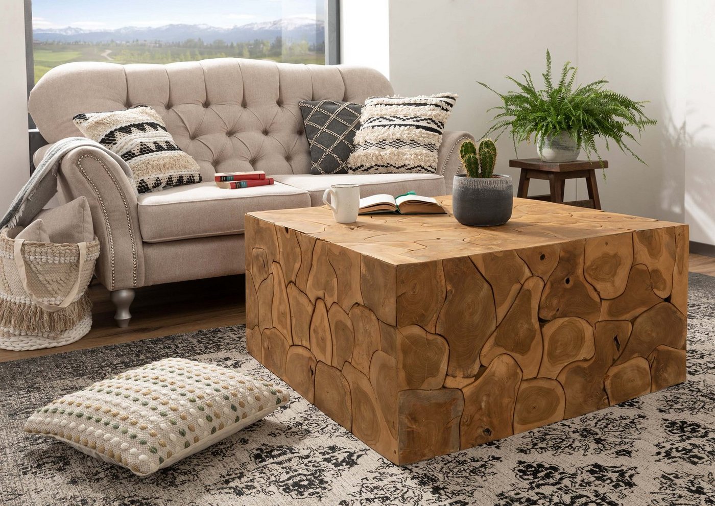 Massivmoebel24 Couchtisch »UNIKA« (90x90x45 Teak...