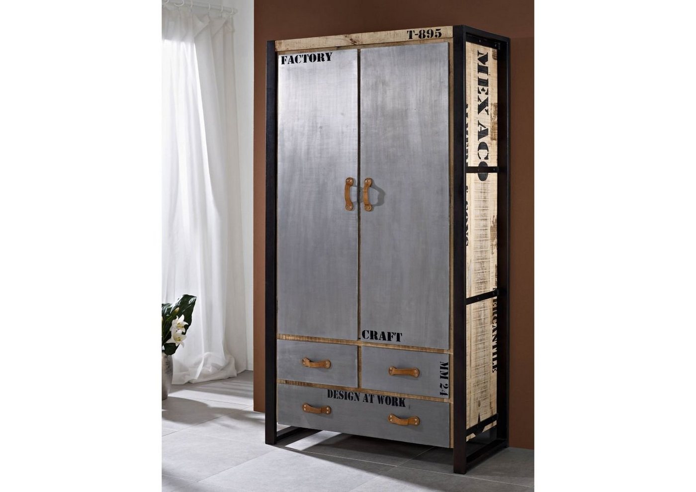 Schrank Mango 100x50x190 natur bedruckt FACTORY #137 —Produkt: Schrank (Industrial-Stil) Serie: FACTORY Breite: 100 cm Tiefe: 50 cm Höhe: 190 cm Gewicht: 102 kg Holzart: Mango, vollmassiv Material: Eisen Farbe: Mango natur bedruckt Versand erfolgt frei Bordsteinkante.Bedruckter Massivholz Schrank mit 2 Türen und 3 Schubladen im Industrial-Stil aus Mangoholz und Eisen, der Serie FACTORY. Mit diesem originellen Möbelstück besitzen Sie wahrlich ein ungewöhnliches Stück! Im extravaganten Look des Industrial ? Stils.Wie alle Teile dieser Serie wurden hier die Materialien Eisen und Mango ? Holz kombiniert und ein Bild der Gegensätze geschaffen. Die präsente Optik dieses Schrankmöbels wurde durch auffällige Gestaltung der Holzteile in jugendlicher Frische geschaffen.