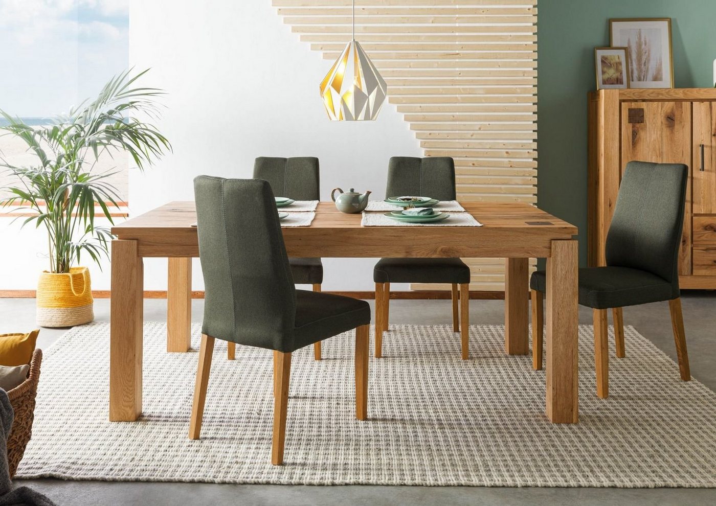 Esstisch Zerreiche 140x100x76 natur geölt GLASGOW #109Produkt: Esstisch (modern) Serie: GLASGOW Breite: 140 cm Tiefe: 100 cm Höhe: 76 cm Gewicht: 71 kg Holzart: Zerreiche, vollmassiv Material: Massivholz Farbe: Eiche natur geölt Das Produkt wird zerlegt geliefert. Versand erfolgt frei Bordsteinkante. Esstisch 140 cm aus Naturholz mit edlem Hirnholz-Segment auf der TischplatteBlickfang Tischbeine: zwischen Platte und Bein setzt die sichtbare Kante einen raffinierten Akzentbildschöne Maserung: Risse, Astansätze und Farbvielfalt sorgen für ein natürliches Flair geölte Oberfläche unterstreicht das lebendige Holzbild der Zerreichepasst toll zu weiteren klassischen Wohnmöbeln der Serie GLASGOWDieser Esstisch aus massiver Zerreiche glänzt mit seiner natürlichen Ausstrahlung: Die lebendige Maserung trifft auf dunkel hervortretende Astansätze – typisch Eichenholz. Weitere Designdetails, die den Tisch aus Massivholz auszeichnen, sind das in die Platte integrierte Hirnholz-Segment. Es bildet den Querschnitt des Baumes ab und zeigt die Jahresringe. Die Aussparung zwischen Tischplatte und Beinen vollendet das stimmige Gesamtbild. Ein raffiniertes Detail, das dem Esszimmertisch aus Eichenholz seine luftige Ausstrahlung verleiht.