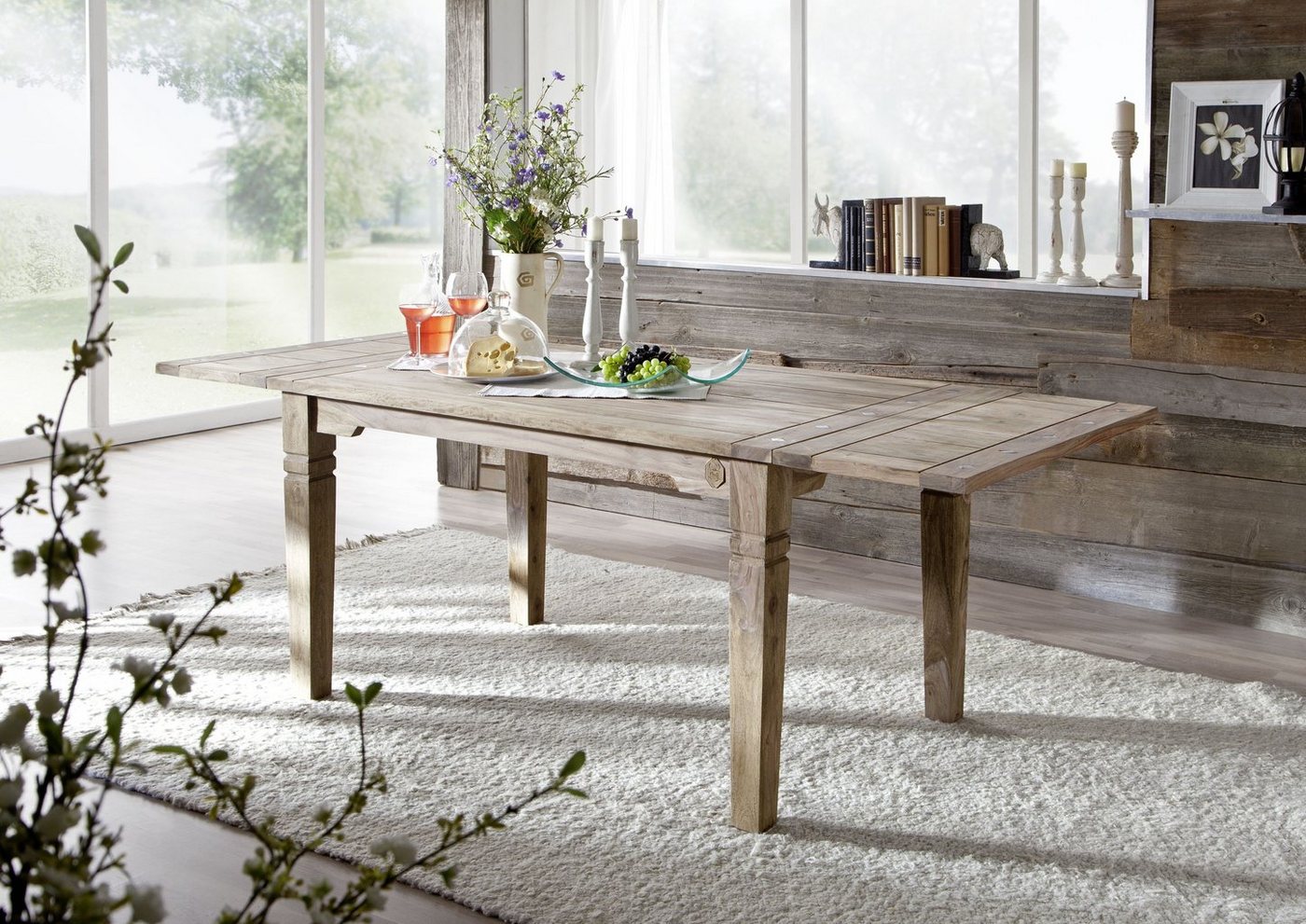 Esstisch mit Ansteckplatten Sheesham 140-180/220x90x76 grau geölt LEEDS #52Produkt: Esstisch Serie: LEEDS Breite: 140 cm Tiefe: 90 cm Höhe: 76 cm Gewicht: 53 kg Holzart: Sheesham / Palisander, vollmassiv Material: Massivholz Farbe: grau geölt Das Produkt wird zerlegt geliefert.2x Ansteckplatte á 40 cm. Esstisch im Landhausstil mit Ansteckplatten aus der Serie LEEDS. Mit diesem Esstisch können Sie Ihrem Essbereich eine markante Note verleihen, während jedes Essen nicht nur für den Gaumen zum Genuss wird! Sie können mit diesem Esstisch der Serie LEEDS und den passenden Sitz- und Beistellmöbeln Ihrem Essbereich ein besonderes Wohlfühlambiente verleihen. Durch die Bearbeitung in der Herstellung entsteht eine einzigartige gräuliche Verfärbung und Sie werden sehen,dass Sie sich jeden Tag an der Maserung des Sheeshamholzes erfreuen werden. Der Esstisch besitzt eine hohe Härte und eignet sich dafür speziell für größere und viel verwendete Möbelstücke.