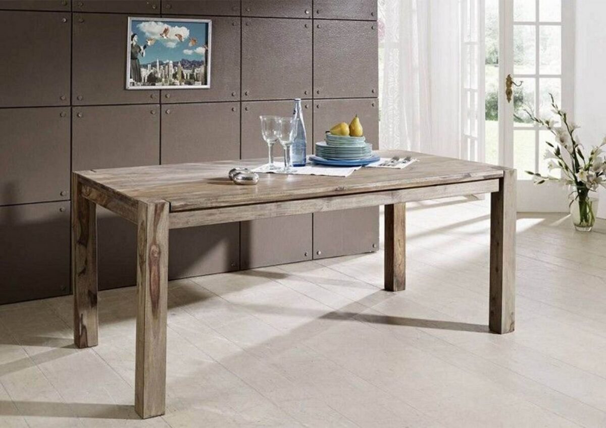 Esstisch Sheesham 120x90x76  grau geölt NATURE GREY #502Produkt: Esstisch (Modern) Serie: NATURE GREY Breite: 120 cm Tiefe: 90 cm Höhe: 76 cm Gewicht: 42 kg Holzart: Sheesham / Palisander, vollmassiv Material: Massivholz Farbe: grau geölt Versand erfolgt frei Bordsteinkante.Wunderschöner Esstisch aus der Serie Nature Grey in Sheesham/Palisander geölt 120cm x 90cm.NATURE GREY verwendet für die Herstellung der Möbel das indische Holz des Palisanders, das auch Sheesham genannt wird.Es besticht durch seine Robustheit und durch seine schöne Maserung des Holzes, das man auf allen Außen- und Innenseiten bewundern kann.Die natürliche rot-gelb-braune Farbe des Kernholzes wird in dieser Serie beinahe unverändert beibehalten und nur das Splintholz mit Öl behandelt.