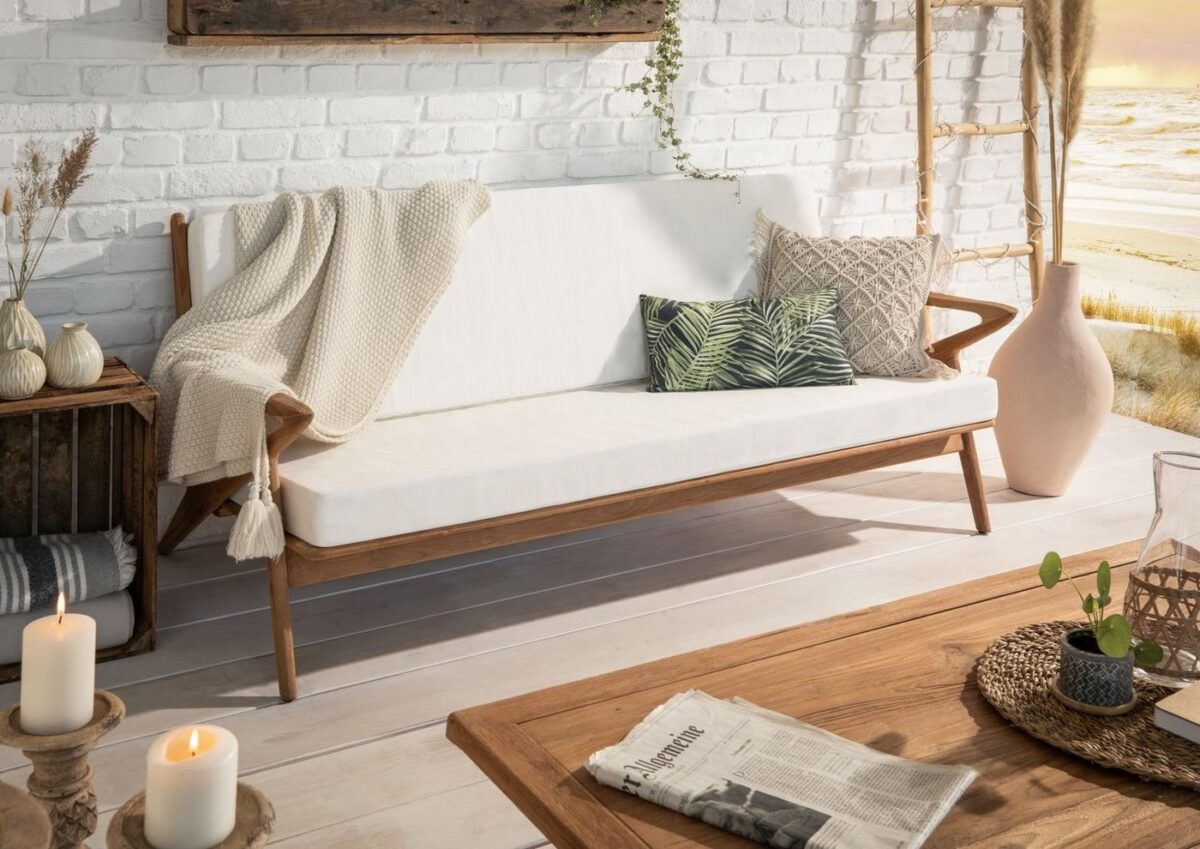 Gartenbank Teak 190x85x80 natur unbehandelt BUTON #22Produkt: Gartenbank (Vintage) Serie: BUTON Breite: 190 cm Tiefe: 85 cm Höhe: 80 cm Gewicht: 18 kg Holzart: Teak, vollmassiv Material: Massivholz Farbe: Teak natur unbehandelt Versand erfolgt frei Bordsteinkante.Eleganz und Sitzkomfort unter freiem Himmel bietet diese Gartenbank der BUTON Gartenmöbel Serie. Gefertigt aus robustem und unbehandeltem Teakholz gibt die Bank unter freiem Himmel nicht nur eine gute Figur ab. Die Gartenbank überzeugt auch mit Design und Stil. Denn das Holz an sich ist bereits ein Blickfang. Der Clou ist die aufwendige Seitenkonstruktion: Armlehne und Bein der Bank verschmelzen zu einer kantigen Einheit. Im Lieferumfang enthaltene Sitzpolster sorgen indes für den notwendigen Komfort.Pflegehinweis: Bei diesem Möbel handelt es sich um ein unbehandeltes Naturprodukt. Um einer silbergrauen Patina sowie Wasserflecken vorzubeugen, empfiehlt sich, das Holz nach erstmaliger Behandlung alle 2 – 3 Jahre einzuölen. Hierfür eignet sich spezielles Teak-Öl und nach Bedarf „Entgrauer für Teakholz",. Diese gibt es in allen herkömmlichen Bau- und Fachmärkten zu kaufen.