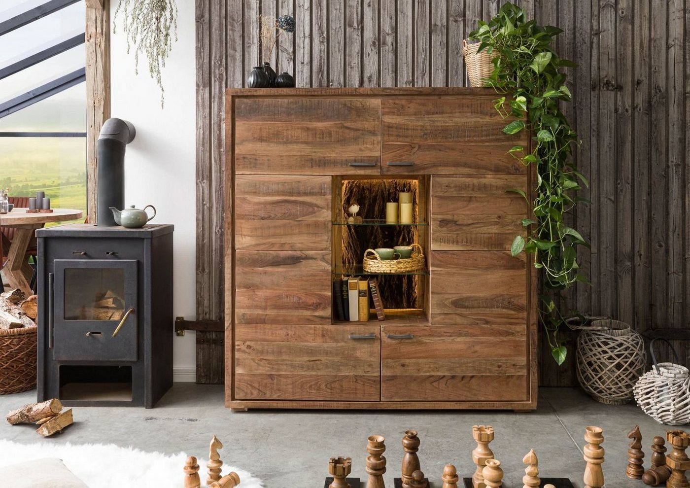 Massivmoebel24 Highboard »BARK« (145x40x153 Akazie...