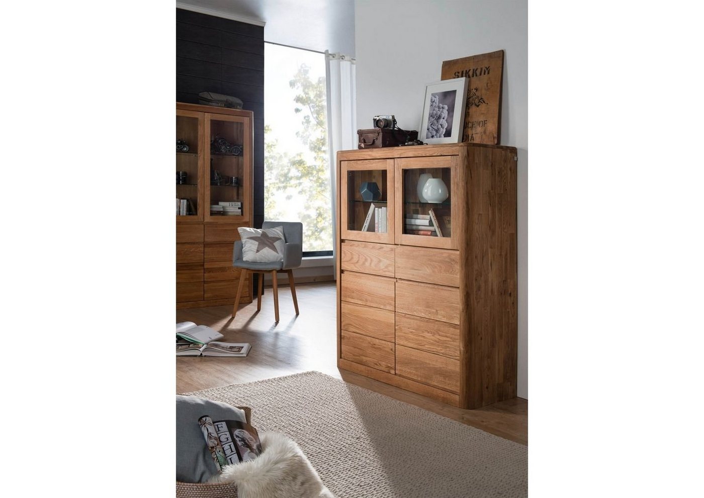 Massivmoebel24 Highboard »LINZ« (111x40x139 Wildeiche...