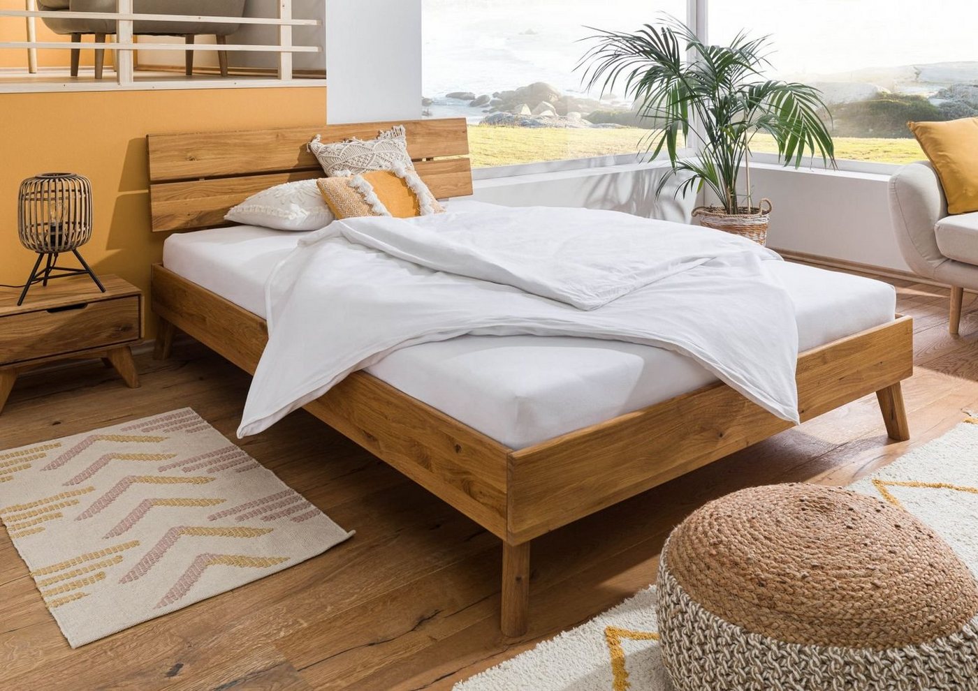 Bett Wildeiche 140x200x82 natur geölt MALMÖ #09Produkt: Bett, Bettgestell (Modern) Serie: MALMÖ Breite: 145 cm Tiefe: 213 cm Höhe: 82 cm Gewicht: 43 kg Holzart: Wildeiche, vollmassiv Material: Massivholz Farbe: Eiche natur geölt Versand erfolgt frei Bordsteinkante.Massivholzbett MALMÖ Wildeiche Eiche 140x200cm geölt massiv Außenmaße: 145×213 cm- Einlegetiefe: 15 cm- Bettrahmenhöhe: 35 cm- Bettrahmen- und Kopfteilstärke: 2 cm- hochwertige Wildeiche aus Mitteleuropa- leichtes Design im modern interpretierten Sixty-Style- Füße im Retro-Look- zerlegtDieses Bett der MALMÖ Reihe punktet nicht nur mit einem erstklassigen Preis-Leistungs-Verhältnis, sondern zugleich auch mit seiner schlichten Schönheit. Das ansprechende Schlafmöbel wurde aus Wildeiche gearbeitet, hier ist eine intensive Maserung und besondere Langlebigkeit also gleich inklusive. Lassen Sie sich auch von der charaktervollen Ausstrahlung im skandinavischen Stil mitreißen, die dieses Bett zu einem Schmuckstück im Schlafzimmer macht.