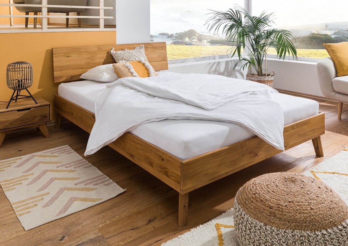 Bett Wildeiche 140x200x82 natur geölt MALMÖ #02Produkt: Bett, Bettgestell (Modern) Serie: MALMÖ Breite: 145 cm Tiefe: 213 cm Höhe: 82 cm Gewicht: 43 kg Holzart: Wildeiche, vollmassiv Material: Massivholz Farbe: Eiche natur geölt Versand erfolgt frei Bordsteinkante.Massivholzbett MALMÖ Wildeiche Eiche 140x200cm geölt massiv-Außenmaße: 145×213 cm- Einlegetiefe: 15 cm- Bettrahmenhöhe: 35 cm- Bettrahmen- und Kopfteilstärke: 2 cm- hochwertige Wildeiche aus Mitteleuropa- leichtes Design im modern interpretierten Sixty-Style- Füße im Retro-Look- zerlegtDieses Bett der Kollektion MALMÖ ist ein stilvoller Allrounder, der sich im nordischen Design präsentiert. So fallen zuerst die leicht nach außen zeigenden massiven Füße des Bettes auf, skandinavischer Stil par excellence! Abgerundet wird der elegante Auftritt des Massivholzbettes von der naturnahen Ausstrahlung der Wildeiche. Gerade die facettenreiche Zeichnung und die sichtbaren Astansätze sind optische Highlights!