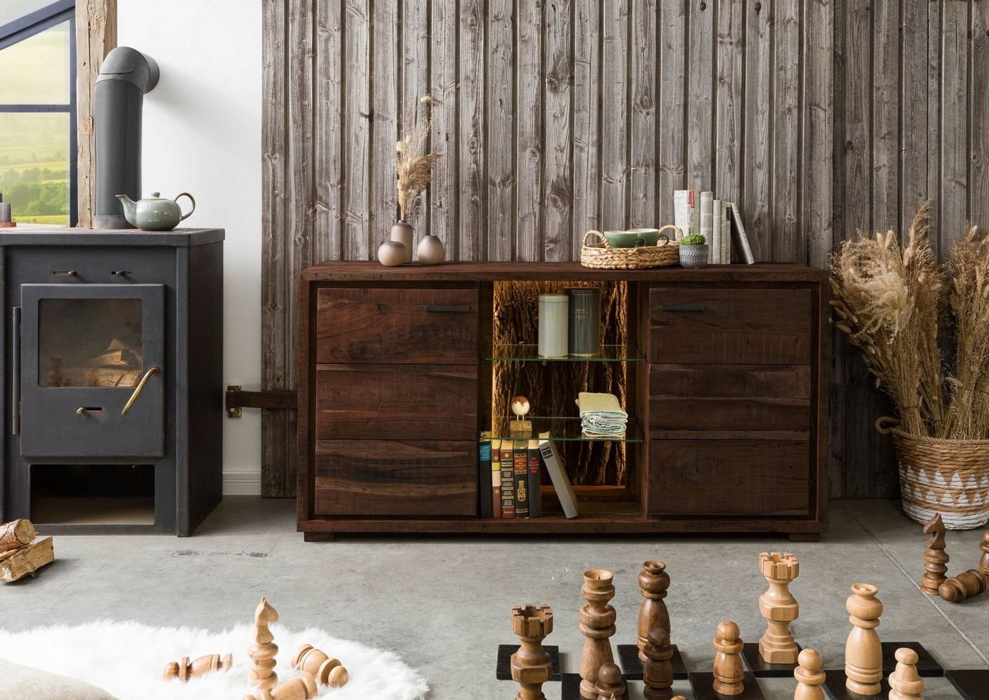 Massivmoebel24 Sideboard »BARK« (145x40x40 Akazie...