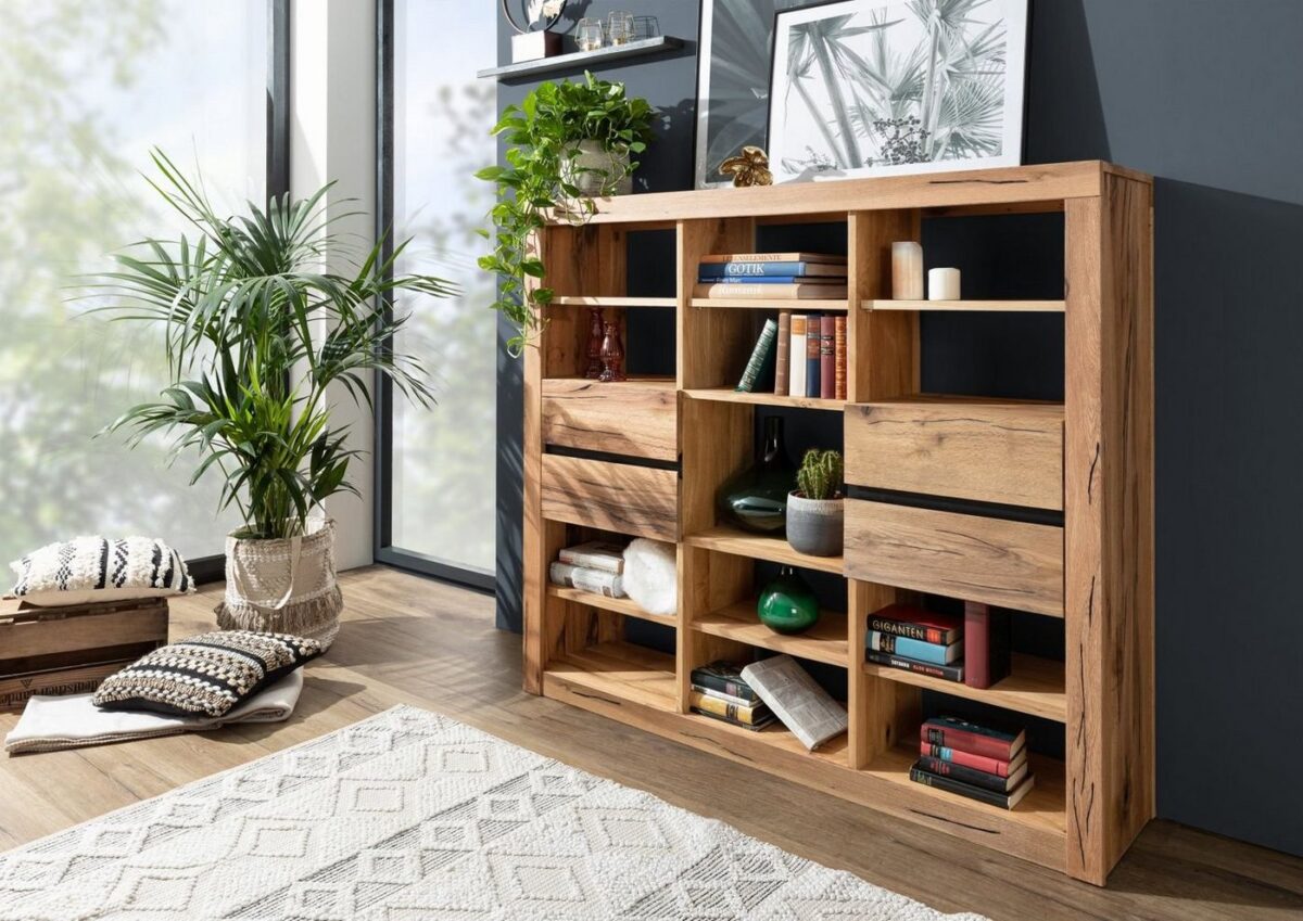 Regal Zerreiche 160x36x140 natur geölt MONTREUX #043Produkt: Regal (Modern) Serie: MONTREUX Breite: 160 cm Tiefe: 36 cm Höhe: 140 cm Gewicht: 110 kg Holzart: Wildeiche / Zerreiche, vollmassiv Material: Massivholz Farbe: Eiche natur geölt Versand erfolgt frei Bordsteinkante.- Holz-Mix aus Zerreiche und urwüchsiger Zerreiche- Soft-Close-System für Türen und Schubladen- auffälliges Farbspiel (hell über rötlich bis dunkel bzw. schwarz) – puristisches griffloses Design- starke Riss-Optik- erhältlich in 3 Farben: Natur, Bianco (hell) Tabacco (dunkelbraun)- Möbel sind aufgebaut- unaufgeregte dunkle Metallblende Produktbeschreibung folgt in Kürze!
