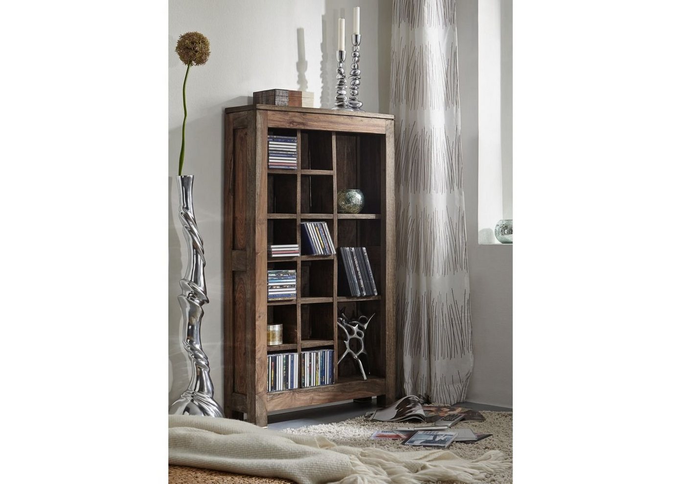 CD-DVD Regal Sheesham 65x18x110  grau geölt NATURE GREY #58Produkt: Regal (Modern) Serie: NATURE GREY Breite: 65 cm Tiefe: 18 cm Höhe: 110 cm Gewicht: 23 kg Holzart: Sheesham / Palisander, vollmassiv Material: Massivholz Farbe: grau geölt Versand erfolgt frei Bordsteinkante.Ausgefallenes Sheesham/Palisander CD-DVD Regal aus der Serie Nature Grey.Das Möbelstück ist aus Palisanderholz gefertigt, sein graues Holz ist von rötlichen Wellen durchzogen und eine zeitlose Erscheinung.Dieses Holz zeichnet sich durch seine strapazierfähige Oberfläche aus. Die verarbeiteten Hölzer sind handverlesen unter besonderer Berücksichtigung der ästhetischen Qualität der Maserung und des Härtegrades.
