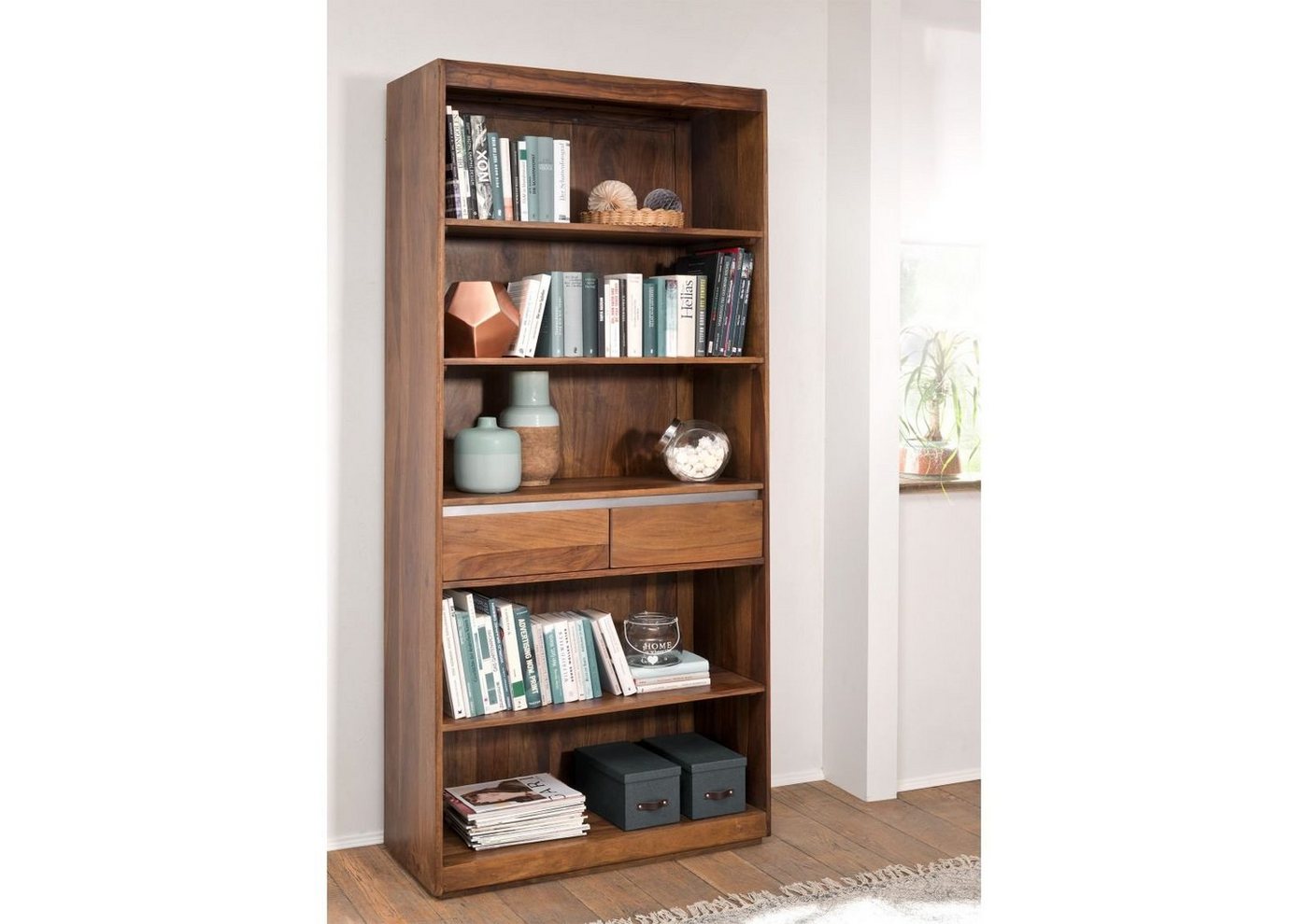 Regal Sheesham 90x40x205 noble unique lackiert SYDNEY #140Produkt: Regal (Modern) Serie: SYDNEY Breite: 90 cm Tiefe: 40 cm Höhe: 205 cm Gewicht: 75 kg Holzart: Sheesham / Palisander, vollmassiv Material: Massivholz Farbe: noble unique lackiert Versand erfolgt frei Bordsteinkante.Dieses Regal ist aus dem massiven Holz des Palisanderbaumes gefertigt worden und damit gerüstet für alle äußeren Einflüsse. Auf insgesamt 5 Regalflächen haben Sie einen würdigen Platz für all Ihre Lieblingsbücher, Ihr Erbgeschirr und Fotos aus Ihrem Leben. Zusätzlichen Stauraum bieten Ihnen die beiden Schubladen. Das Massivmöbel strahlt eine natürliche Ruhe aus, die durch die individuelle Zeichnung des Baumstammes entsteht. Diese Maserung macht jedes Regal zum Unikat. Als Finish wurde die Oberfläche des Holzes mit einem Lack in der Farbe noble unique versehen. Ganz sicher finden Sie einen Platz in Ihrer Wohnlandschaft, der nur auf dieses zeitlos schöne Regal gewartet hat.