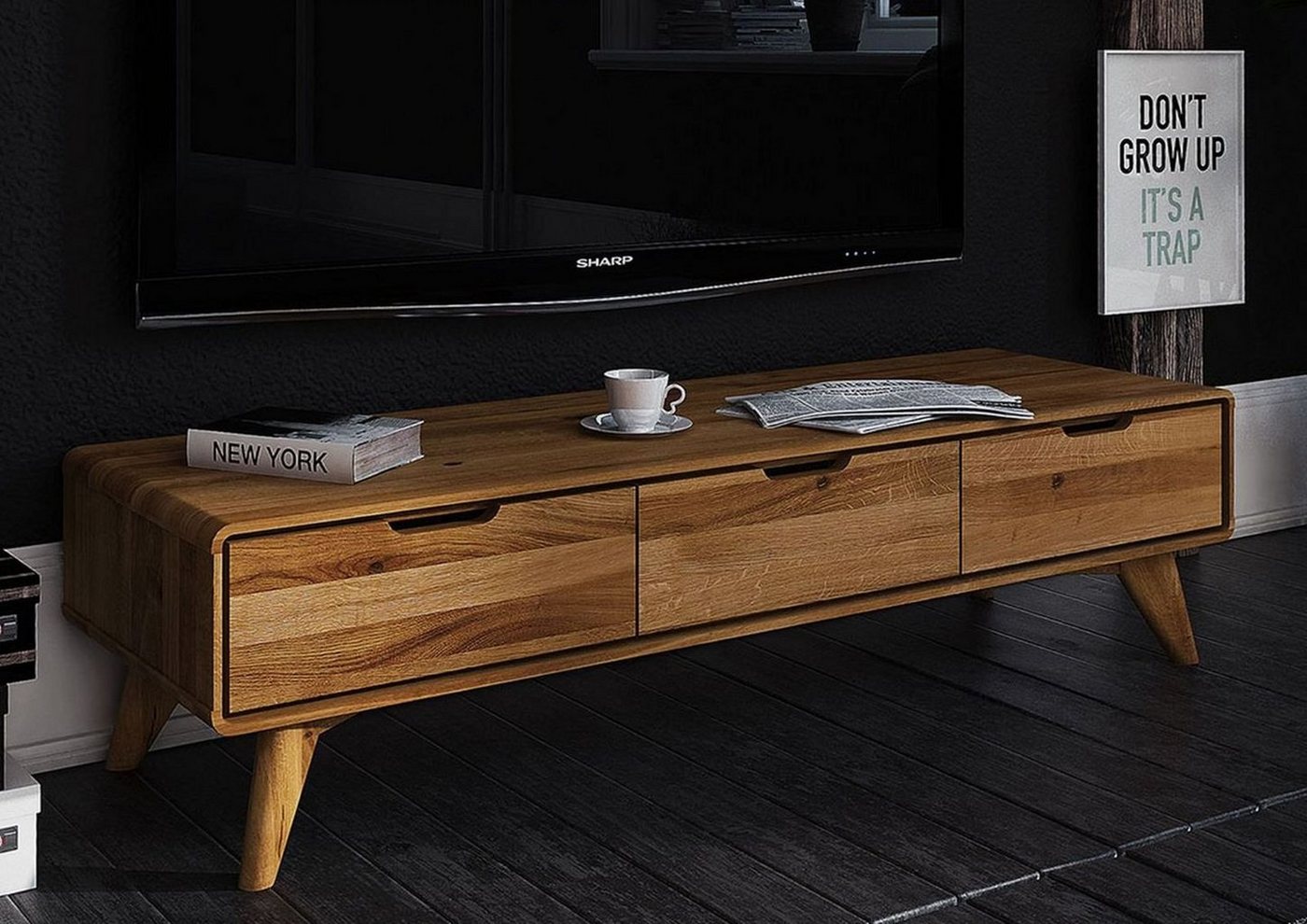 TV-Board Wildeiche 134x40x33 natur geölt MALMÖ #25Produkt: TV-Board (Modern) Serie: MALMÖ Breite: 134 cm Tiefe: 40 cm Höhe: 33 cm Gewicht: 35 kg Holzart: Wildeiche, vollmassiv Material: Massivholz Farbe: Eiche natur geölt Versand erfolgt frei Bordsteinkante.- hochwertige Wildeiche aus Mitteleuropa- leichtes Design im modern interpretierten Sixty-Style- Soft-Close-System- moderne eingefräste Griffe- abgerundete Kanten- filigrane Linienführung des Randes- Füße im Retro-Look- Möbel sind aufgebautAbgerundete Kanten, Füße im Retro-Look und eingefräste Griffe geben diesem TV-Lowboard der Kollektion MALMÖ das gewisse Etwas. Aber das ist noch nicht alles: Auch die Verarbeitung spricht für sich. Zum Einsatz kam hier das solide Holz der Wildeiche, das mit seiner Qualität und einer interessanten Maserung auf sich aufmerksam macht.