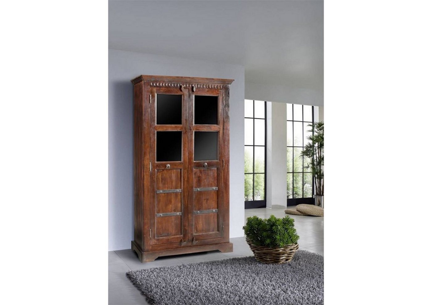 Massivmoebel24 Vitrine »OXFORD« (98x50x176 Akazie...