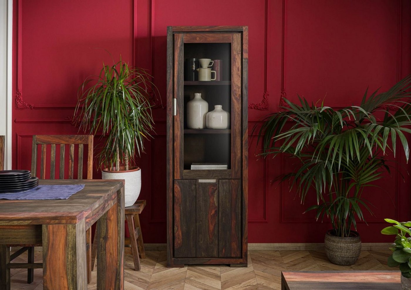 Massivmoebel24 Vitrine »TAMBORA« (60x42x180 Sheesham...