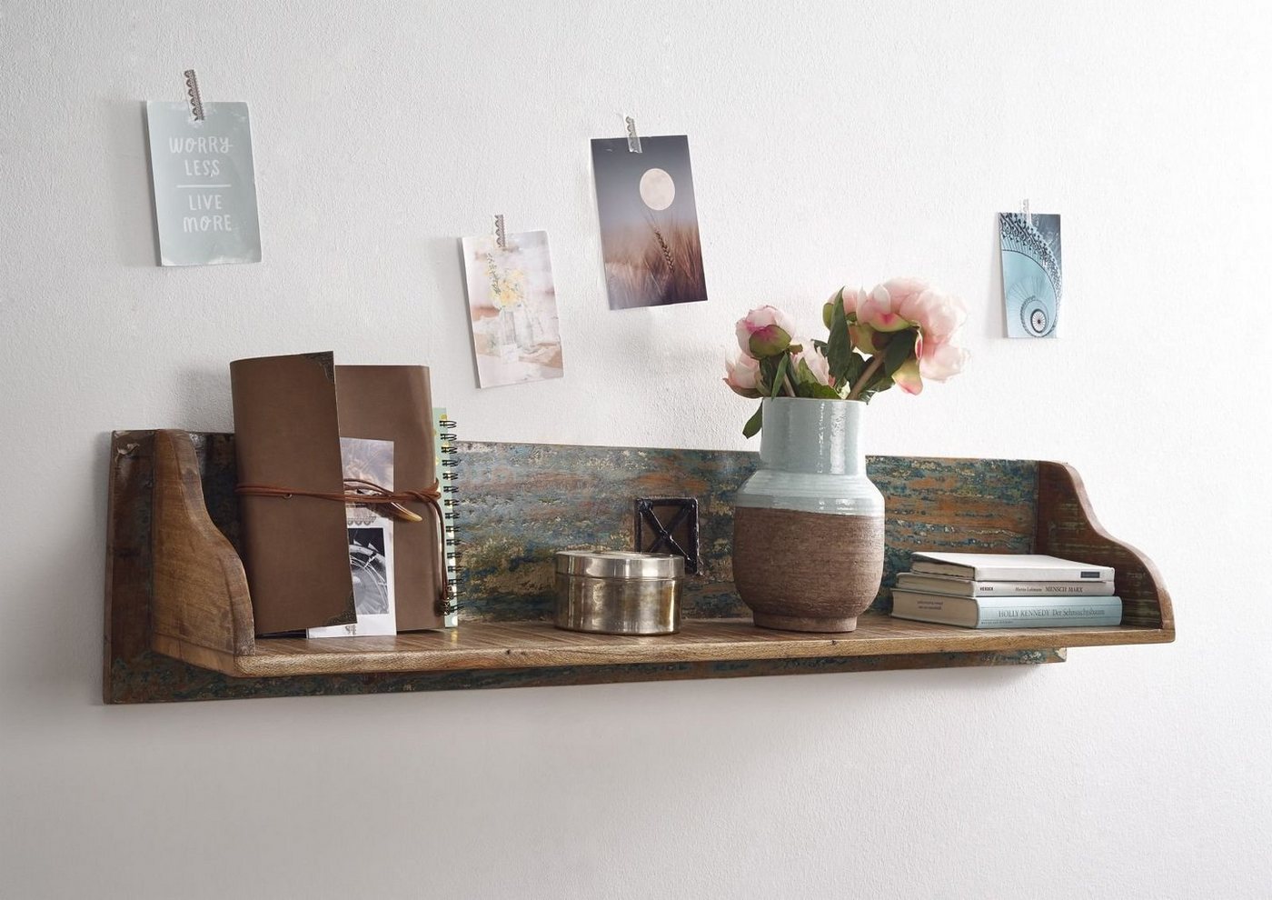 Wandregal Altholz 116x22x24 mehrfarbig lackiert NATURE OF SPIRIT #116Produkt: Wandregal (Vintage) Serie: NATURE OF SPIRIT Breite: 116 cm Tiefe: 22 cm Höhe: 24 cm Gewicht: 9 kg Holzart: Altholz, vollmassiv Material: Massivholz Farbe: mehrfarbig lackiert Versand erfolgt frei Bordsteinkante.Besonderheit: &lt,/?&gt,ca. 60% wiederverwertetes AltholzRest, neues massives Mango- oder AkazienholzSie lieben das angesagte Aussehen des Vintage Looks? Dann sollten Sie unbedingt einen Blick auf dieses hübsche Regal in Used Optik aus der SPIRIT Kollektion werfen. Die stilvolle Wandkonsole wurde aus massivem Altholz gefertigt und besticht durch die abgenutzte, aber farbenfrohe Lackierung. Profitieren auch Sie von diesem originellen Designermöbelstück aus Massivholz!