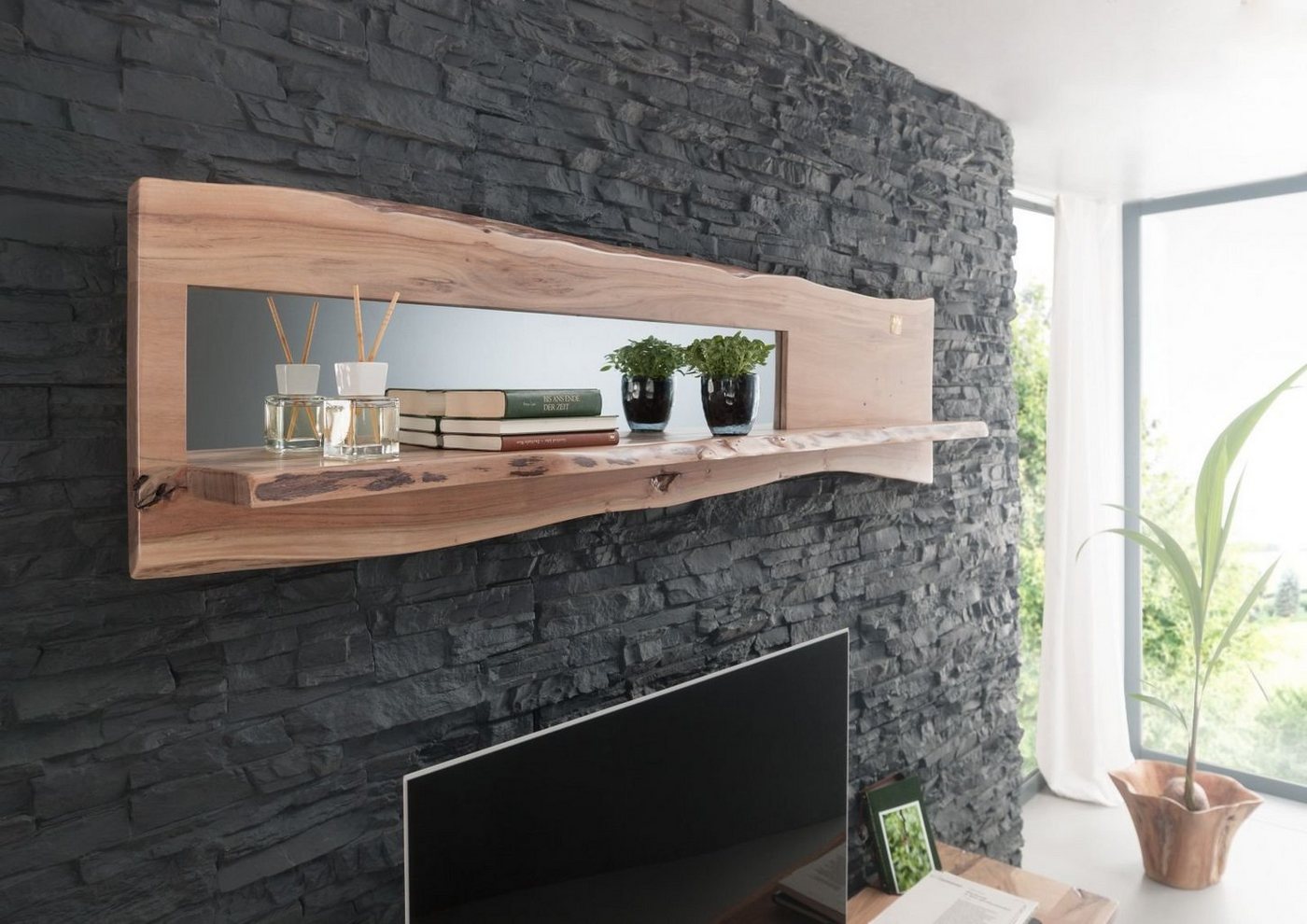 Massivmoebel24 Wandregal »PURE ACACIA«, echte Baumkante,Unikat,Astlöcher,urwüchsige...