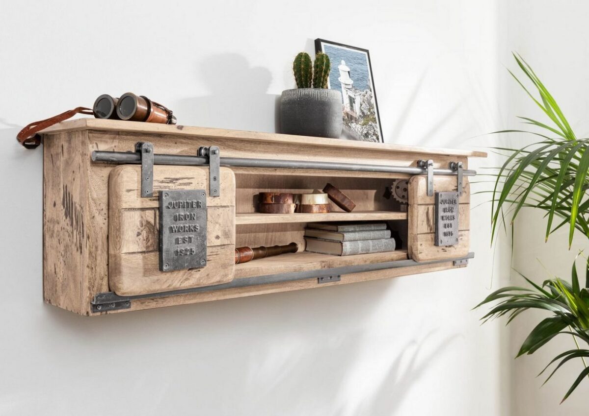 Massivmoebel24 Wandregal »RAILWAY«, weiß,used-optik,Metallapplikationen...