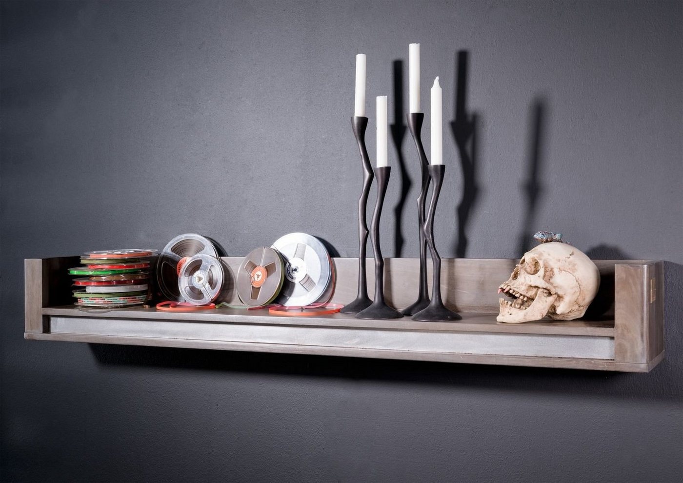 Massivmoebel24 Wandregal »SYDNEY«, Sheeshamholz,metallische...