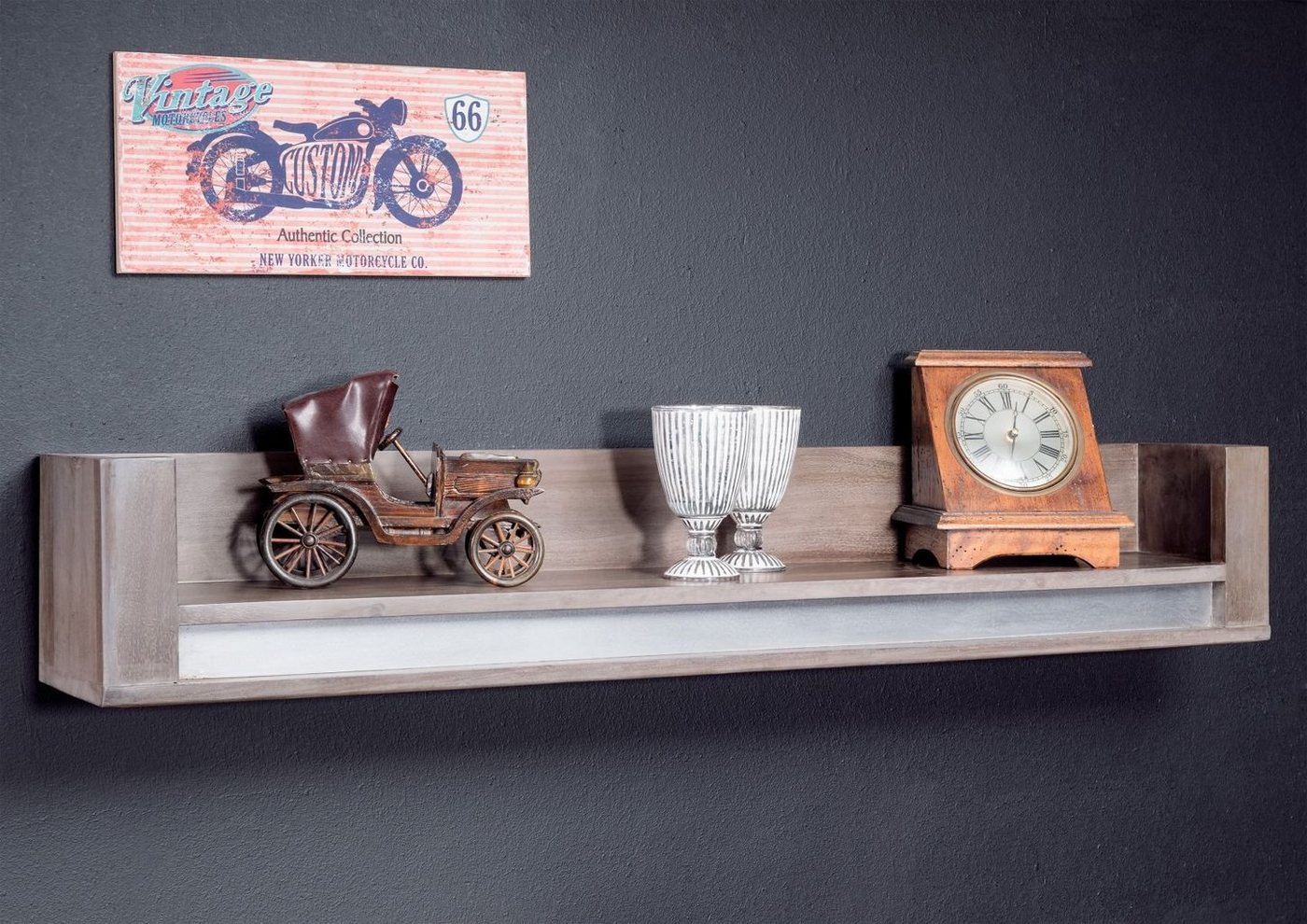 Massivmoebel24 Wandregal »SYDNEY«, Sheeshamholz,metallische...