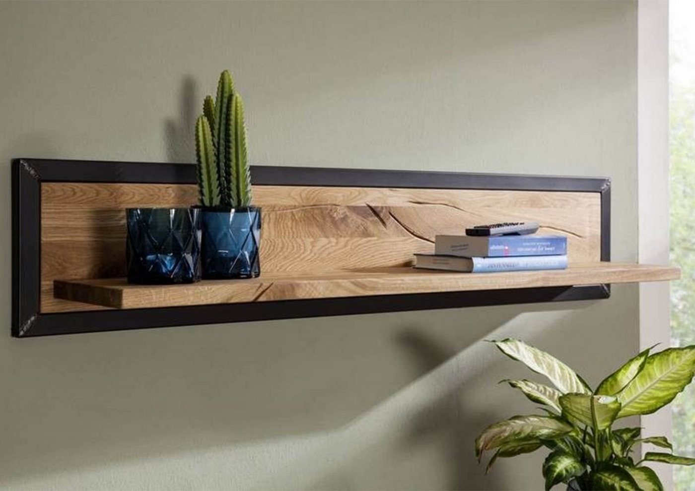 Wandregal Wildeiche 120x22x24 natur geölt VILLANDERS #116Produkt: Wandregal (Modern) Serie: VILLANDERS Breite: 120 cm Tiefe: 22 cm Höhe: 24 cm Gewicht: 20 kg Holzart: Wildeiche, vollmassiv Material: Massivholz Farbe: Eiche natur geölt Versand erfolgt frei Bordsteinkante.Als Schmuckstück an der Wand inszeniert sich dieses Wandregal der VILLANDERS Reihe. Das Wandboard verfügt über einen metallischen Rahmen, der herrlich zum Grunddesign der Kollektion passt. Auch das charaktervolle Holz der Wildeiche ist ein echter Blickfang, der mit seiner lebhaften Maserung und den spannungsbedingten Wuchsrissen auffällt. Dieses Wandboard ist die perfekte Ergänzung zu weiteren Einrichtungsgegenständen der Möbelreihe.