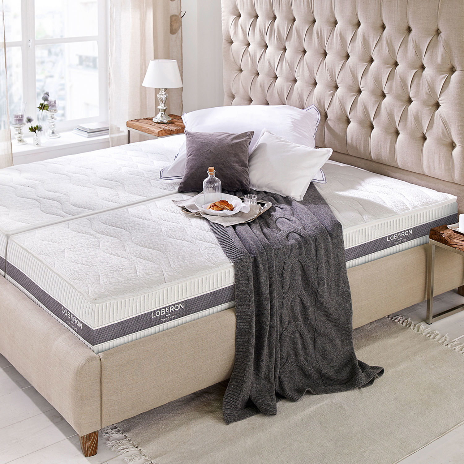 Diese in Deutschland hergestellte Matratze bietet Ihnen perfekten Schlafkomfort. Dabei können Sie zwischen zwei verschiedenen Härtegraden wählen. Härtegrad 2 empfiehlt sich bei einem Körpergewicht bis zu 80kg. Über 80kg greifen Sie am besten zu Härtegrad 3. Je höher also die Zahl, desto härter und fester ist die Matratze. Im Inneren der Matratze sorgt bei beiden Härtegrad-Varianten ein 7-Zonen-Tonnentaschenfederkern für höchste Stabilität mit hervorragender Luftzirkulation und gutem Feuchtigkeitstransport. Die einzelnen, in Textiltaschen eingenähten Stahlfedern (774 Stück bei Größe 100×200) cm) sind sehr geräuscharm und sorgen für gute Punktelastizität. Für eine sanfte Druckentlastung sorgt die beidseitige Kaltschaumauflage (6 cm, Raumgewicht 35). Der mit hochwertiger Klimafaser versteppte Doppeltuchbezug leitet Feuchtigkeit schnell ins Faserinnere und trägt so zu einem angenehm trockenen Schlafklima bei. Die Matratze hält also sehr lange Ihre perfekte Form und sorgt für ein perfektes Schlafklima zu jeder Jahreszeit. Die hautsympathische Tencel-Qualität kühlt bei warmen Temperaturen und wärmt bei Kälte. Durch seinen 4-Seiten-Reißverschluss lässt sich der Matratzenbezug einfach abziehen und waschen. Auch für Allergiker bestens geeignet durch die Verwendung von allergenreduzierten Materialien. Die Komforthöhe von ca. 26 cm und die verstärkte Sitzkante erleichtern das Aufstehen. Insgesamt also ein wohldurchdachtes Konzept von hochwertigen Materialien. Und mit den seitlich angebrachten vier Grifftaschen lässt sich die Matratze schnell und einfach tragen oder wenden. Geeignet ist sie für Betten mit einem Latenrost der Größe 90×200 m. Genießen Sie beste Schlafqualität aus Deutschland.