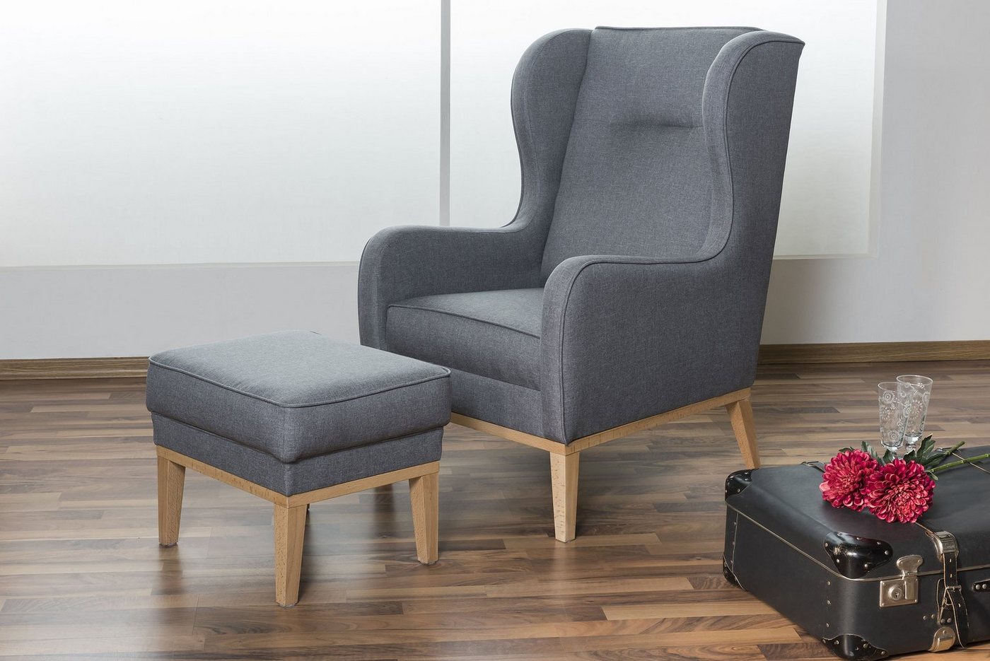 OhrenbackensesselAngelo ist ein klassischer Ohrenbackensessel in neuem Design. Der markante, umlaufende Holzsockel verleiht ihm eine leichte, bodenfreihe Optik. Die nach hinten abfallende Rücklehne sorgt für entspannten Sitzkomfort. Aufwendig gearbeitete Kedernähte unterstreichen das klassisch-elegante Gesamtbild.Scheuertouren: &gt, 100.000Pilling: 4 – 5Lichtechtheit: 4 – 5Reibechtheit (trocken): 4 – 5Reibechtheit (nass): 4 – 5