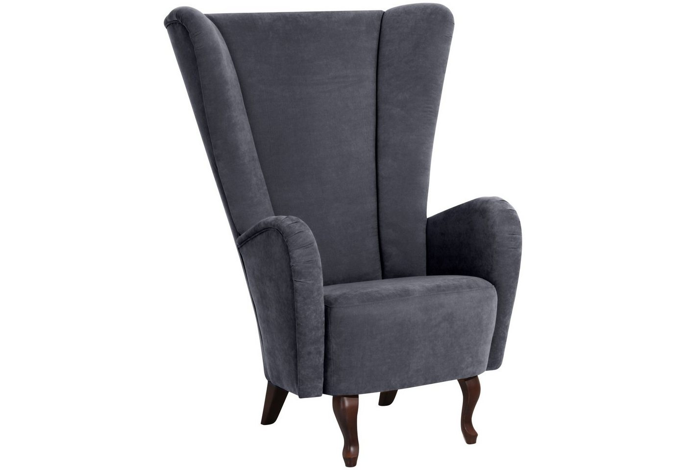 Hochlehnsessel VeloursDieser elegante Sessel mit seinem extrahohen Rücken erinnert an einen Thron. Fühlen Sie sich königlich und setzten Sie ein echtes Highlight in Ihrem Zuhause. Die beiden vorderen, stilvoll geschwungenen Füße unterstreichen das Gesamtbild. Die Füße sind zur einfachen Selbstmontage. Scheuertouren: 40.000Pilling: 4Lichtechtheit: 5Reibechtheit (trocken): 5Reibechtheit (nass): 3 – 4