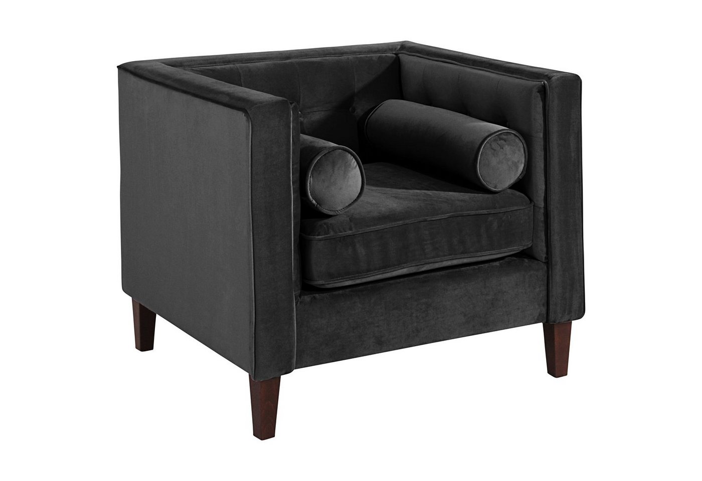 Sessel SamtDas Modell Jeronimo präsentiert sich als moderner Blickfang im Chesterfieldstil. Das tolle Design ist geprägt von geraden Linien, der hübschen Steppung im Rückenbereich und den losen Zierkissen. Als Garnitur, aber auch einzeln stellbar, macht Jeronimo eine tolle Figur! Die Füße sind zur einfachen Selbstmontage.Scheuertouren: 100.000Pilling: 5Lichtechtheit: 5Reibechtheit (trocken): 5Reibechtheit (nass): 5Pflege: chemische Reinigung