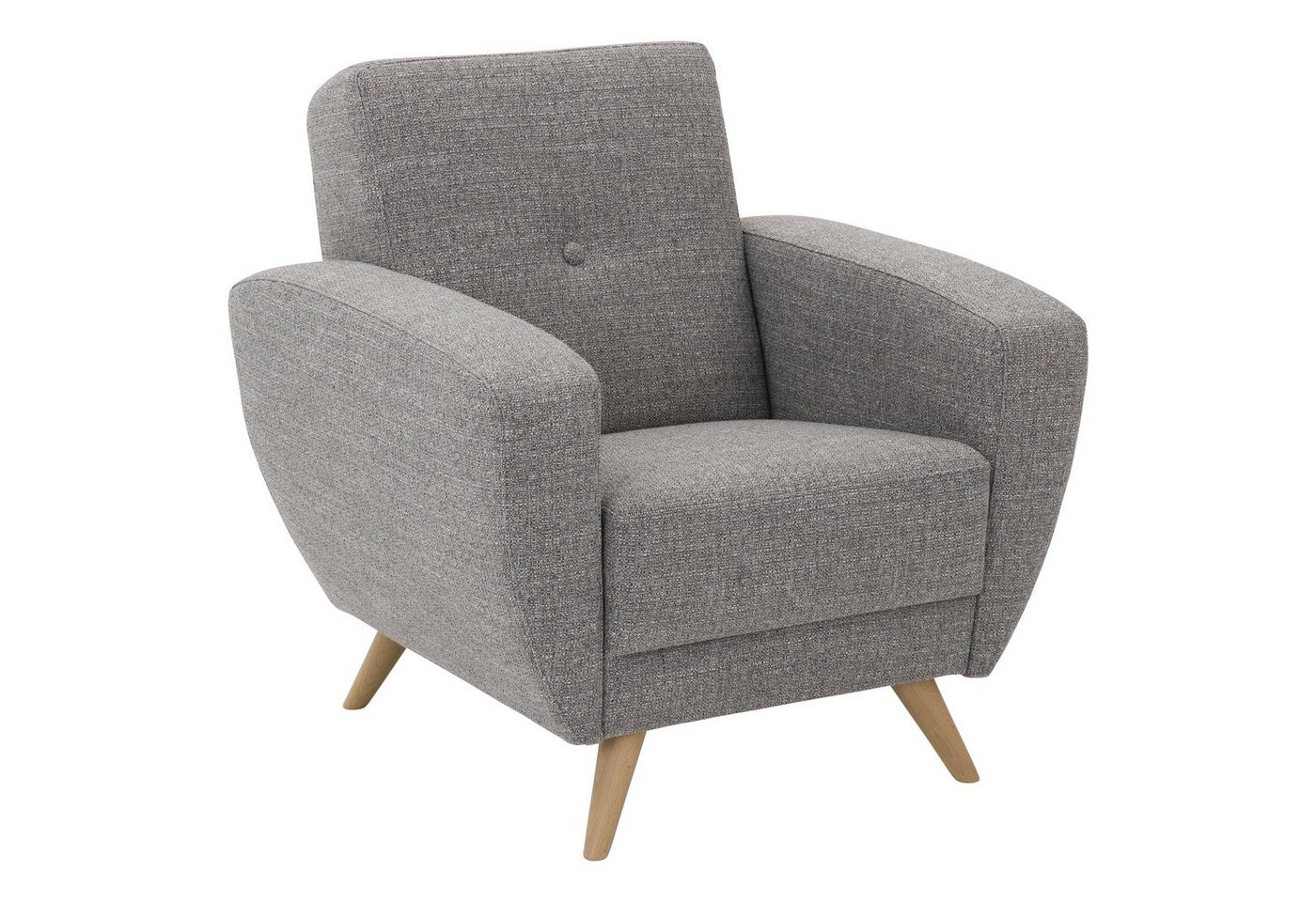 Sessel meliertKlassischer Sessel im Retro-Look, passend zur Möbelserie Jerry von Max Winzer®. Der Sessel überzeugt durch seine handwerkliche Verarbeitung mit Federkern in der Sitzfläche. Die Rückenpartie ist mit einem dekorativen Zierknopf versehen. Die elegant geschwungenen Armlehnen verjüngen sich nach unten und unterstreichen den Retro-Charme dieser kompakten Möbelserie. Der grob strukturierte Webstoff präsentiert sich aus einer Melange von unterschiedlichen Grautönen und verleiht dem Retro-Style einen modernen zeitgemäßen Look. Die filigranen Holzfüße aus massiver Buche verjüngen sich nach unten und unterstreichen die filigrane Optik des Sessels. Ob als gemütliches Solomöbel oder in Ergänzung zur passenden Garnitur, mit seinem zeitlosem Retro-Look und der hochwertigen Verarbeitung ist Jerry vielseitig kombinierbar.Scheuertouren: >, 100.000Pilling: 4 – 5Lichtechtheit: 5Reibechtheit (trocken): 4 – 5Reibechtheit (nass): 4 – 5
