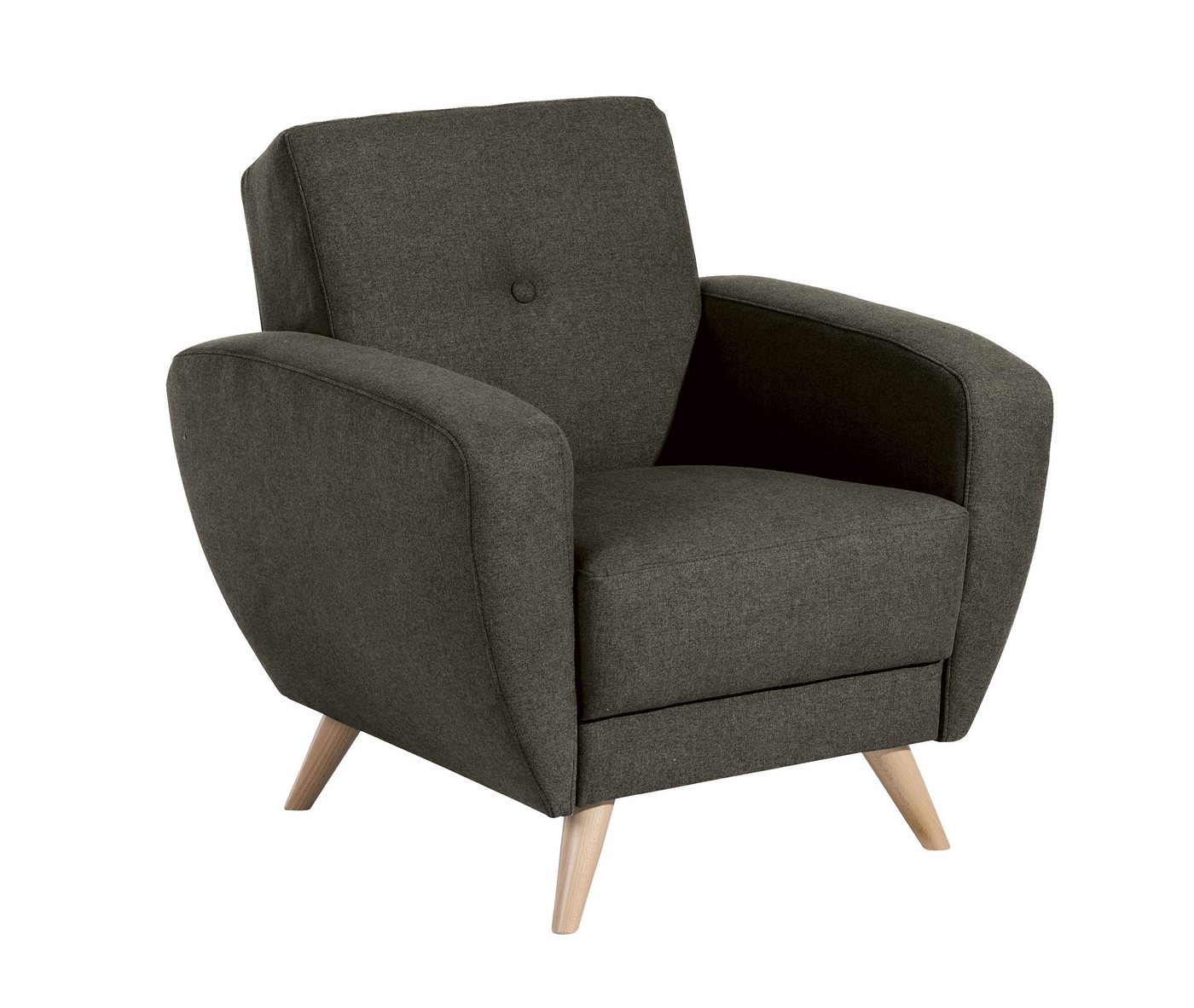 Sessel SamtKlassischer Sessel im Retro-Look, passend zur Möbelserie Jerry von Max Winzer®. Der Sessel überzeugt durch seine handwerkliche Verarbeitung mit Federkern in der Sitzfläche. Die Rückenpartie ist mit einem dekorativen Zierknopf versehen. Die elegant geschwungenen Armlehnen verjüngen sich nach unten und unterstreichen den Retro-Charme dieser kompakten Möbelserie. Der grob strukturierte Webstoff präsentiert sich aus einer Melange von unterschiedlichen Grautönen und verleiht dem Retro-Style einen modernen zeitgemäßen Look. Die filigranen Holzfüße aus massiver Buche verjüngen sich nach unten und unterstreichen die filigrane Optik des Sessels. Ob als gemütliches Solomöbel oder in Ergänzung zur passenden Garnitur, mit seinem zeitlosem Retro-Look und der hochwertigen Verarbeitung ist Jerry vielseitig kombinierbar.Scheuertouren: &gt, 45.000Pilling: 4Lichtechtheit: 4 – 5Reibechtheit (trocken): 4 – 5