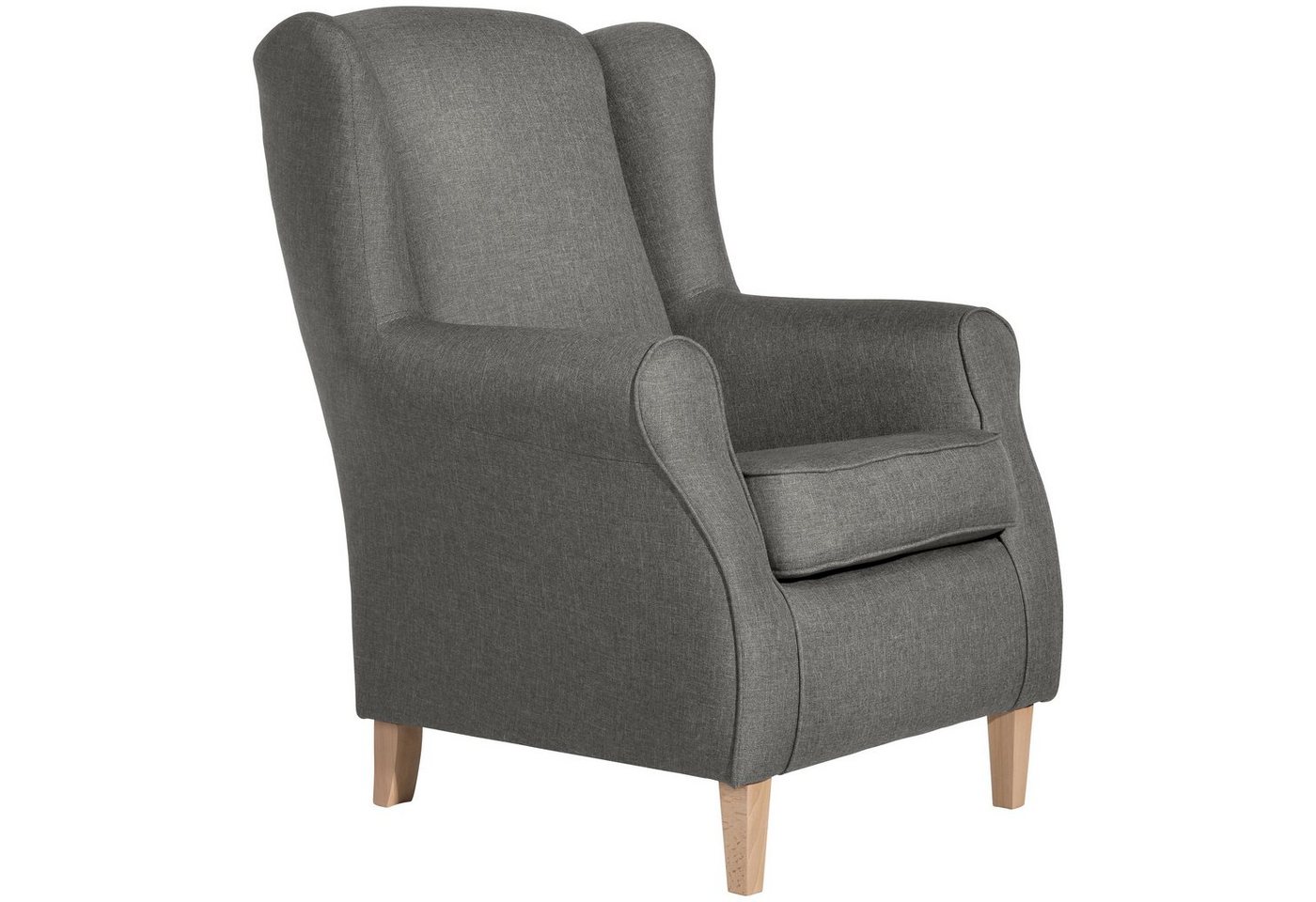 OhrenbackensesselUnser Klassiker! Lorris ist ein bequemer Hochlehnsessel im klassischen Ohrenbackenstil. Ob im schlichten Uni-Stoff, samtigen Velour oder floral gemustert – Lorris zaubert in jedem Outfit das Flair von Großmutters-Zeiten in Ihr Wohnzimmer. Aufgewertet wird das Modell durch Kedernähte am Sitz und an den harmonisch geschwungenen Armlehnen. Für einen hohen Sitzkomfort sorgt das lose Sitzkissen mit schaumummanteltem Einzelfederkern, das mit Klettverschluss am Korpus befestigt ist. Die Füße sind zur einfachen Selbstmontage.Scheuertouren: &gt, 100.000Pilling: 4 – 5Lichtechtheit: 4 – 5Reibechtheit (trocken): 4 – 5Reibechtheit (nass): 4 – 5