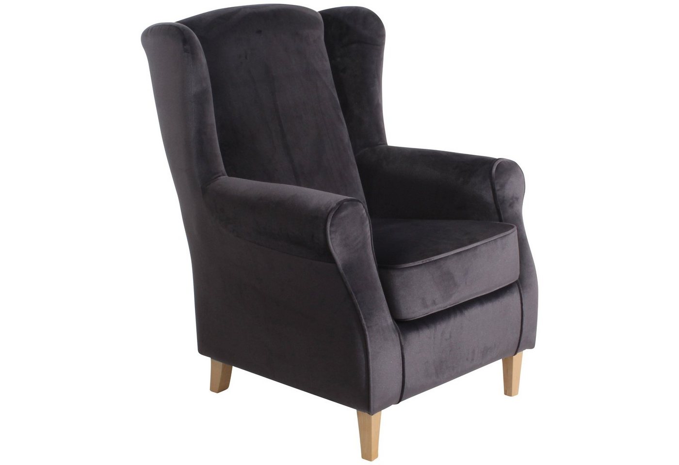 Ohrenbackensessel SamtUnser Klassiker! Lorris ist ein bequemer Hochlehnsessel im klassischen Ohrenbackenstil. Ob im schlichten Uni-Stoff, samtigen Velour oder floral gemustert – Lorris zaubert in jedem Outfit das Flair von Großmutters-Zeiten in Ihr Wohnzimmer. Aufgewertet wird das Modell durch Kedernähte am Sitz und an den harmonisch geschwungenen Armlehnen. Für einen hohen Sitzkomfort sorgt das lose Sitzkissen mit schaumummanteltem Einzelfederkern, das mit Klettverschluss am Korpus befestigt ist. Die Füße sind zur einfachen Selbstmontage.Scheuertouren: 100.000Pilling: 5Lichtechtheit: 5Reibechtheit (trocken): 5Reibechtheit (nass): 5Pflege: chemische Reinigung
