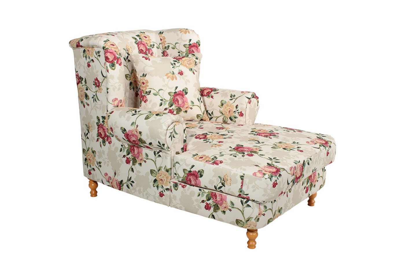 Big-Sessel inkl. 2x Zierkissen 55x55cm &#43, 40x40cm geblümtMegasessel mit integriertem Longchair im klassischen Ohrenbackenstil. Die Lieferung erfolgt inkl. 2 Zierkissen (55 x 55 cm und 40 x 40 cm). Außergewöhnlicher Blickfang für Ihr Wohnzimmer. Die gedrechselten Holzfüße runden das Gesamtbild ab. Die Füße sind zur einfachen Selbstmontage.Scheuertouren: 50.000Pilling: 4 – 5Lichtechtheit: &gt, 5Reibechtheit (trocken): 4 – 5Reibechtheit (nass): 4