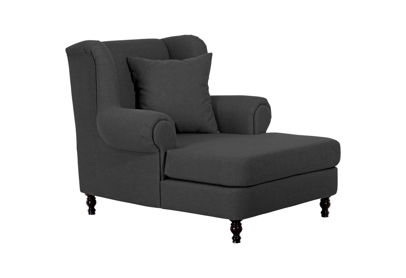 Big-Sessel inkl. 2x Zierkissen 55x55cm &#43, 40x40cm LeinenoptikMegasessel mit integriertem Longchair im klassischen Ohrenbackenstil. Die Lieferung erfolgt inkl. 2 Zierkissen (55 x 55 cm und 40 x 40 cm). Außergewöhnlicher Blickfang für Ihr Wohnzimmer. Die gedrechselten Holzfüße runden das Gesamtbild ab. Die Füße sind zur einfachen Selbstmontage.Scheuertouren: 23.000Pilling: 3 – 4Lichtechtheit: 5Reibechtheit (trocken): 4 – 5Reibechtheit (nass): 4 – 5Pflege: waschbar bei 40 °C