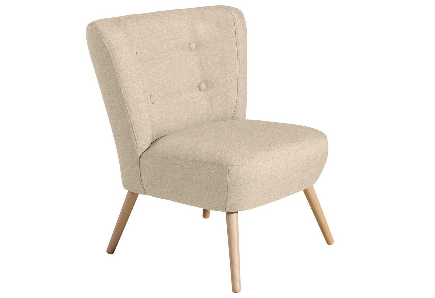 SesselFormschöner Sessel mit vier Zierknöpfen im angesagten Retro-Stil. Neele ist in vielen verschiednenen Bezugstoffen von modern bis verträumt erhältlich. Wählen Sie Ihren Lieblingsstoff und kreieren Sie einen tollen Blickfang für Ihr Zuhause. Die markanten Holzfüße sind zur einfachen Selbstmontage. Scheuertouren: &gt, 100.000Pilling: 4 – 5Lichtechtheit: 4 – 5Reibechtheit (trocken): 4 – 5Reibechtheit (nass): 4 – 5