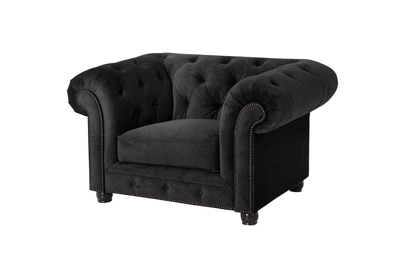 Sessel MicrofaserOrleans holt den englischen Chesterfield Stil in Ihr Wohnzimmer. Mit handwerklicher Wertarbeit wurde die aufwändige Knopfheftung im Rücken, an der Sitzrampe und den geschwungenen Armlehnen gefertigt. Gearbeitet mit viel Liebe zum Detail erhält dieses Sofa seinen markanten, unverwechselbaren Look. Auch die Rückseite ist mit Stoff bezogen, damit ist das Sofa frei im Raum stellbar. Die Füße sind zur einfachen Selbstmontage.Scheuertouren: &gt, 100.000Pilling: 4 – 5Lichtechtheit: 4Reibechtheit (trocken): 4 – 5Reibechtheit (nass): 4 – 5Pflege: waschbar bei 30 °C