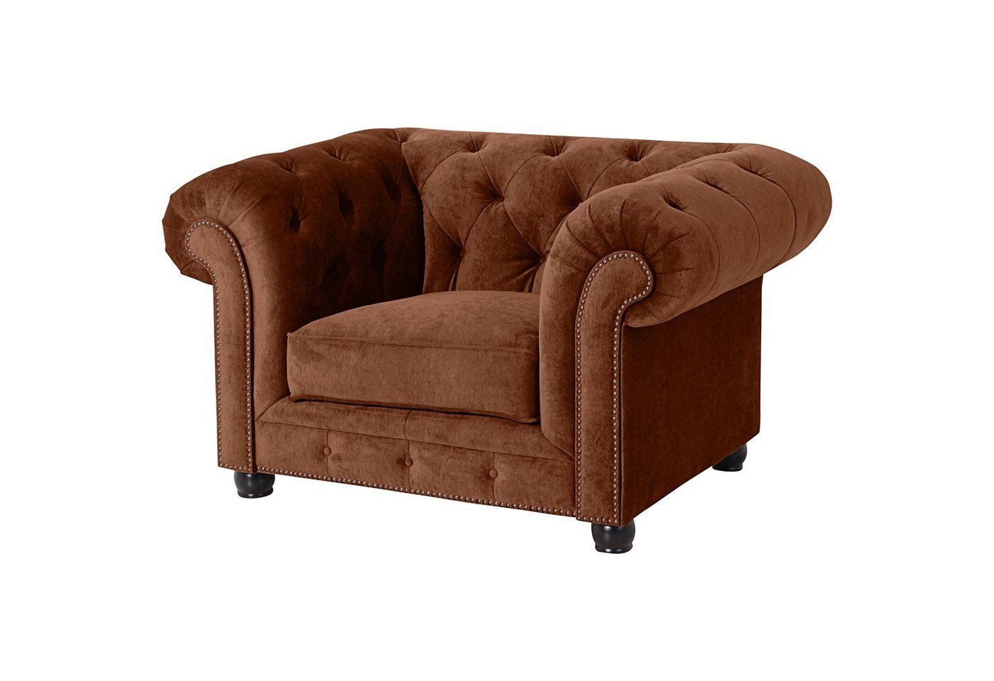 Sessel MicrofaserOrleans holt den englischen Chesterfield Stil in Ihr Wohnzimmer. Mit handwerklicher Wertarbeit wurde die aufwändige Knopfheftung im Rücken, an der Sitzrampe und den geschwungenen Armlehnen gefertigt. Gearbeitet mit viel Liebe zum Detail erhält dieses Sofa seinen markanten, unverwechselbaren Look. Auch die Rückseite ist mit Stoff bezogen, damit ist das Sofa frei im Raum stellbar. Die Füße sind zur einfachen Selbstmontage.Scheuertouren: &gt, 100.000Pilling: 4 – 5Lichtechtheit: 4Reibechtheit (trocken): 4 – 5Reibechtheit (nass): 4 – 5Pflege: waschbar bei 30 °C