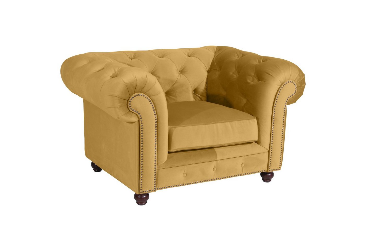 Sessel SamtOrleans holt den englischen Chesterfield Stil in Ihr Wohnzimmer. Mit handwerklicher Wertarbeit wurde die aufwändige Knopfheftung im Rücken, an der Sitzrampe und den geschwungenen Armlehnen gefertigt. Gearbeitet mit viel Liebe zum Detail erhält dieses Sofa seinen markanten, unverwechselbaren Look. Auch die Rückseite ist mit Stoff bezogen, damit ist das Sofa frei im Raum stellbar. Die Füße sind zur einfachen Selbstmontage.Scheuertouren: 100.000Pilling: 5Lichtechtheit: 5Reibechtheit (trocken): 5Reibechtheit (nass): 5Pflege: chemische Reinigung
