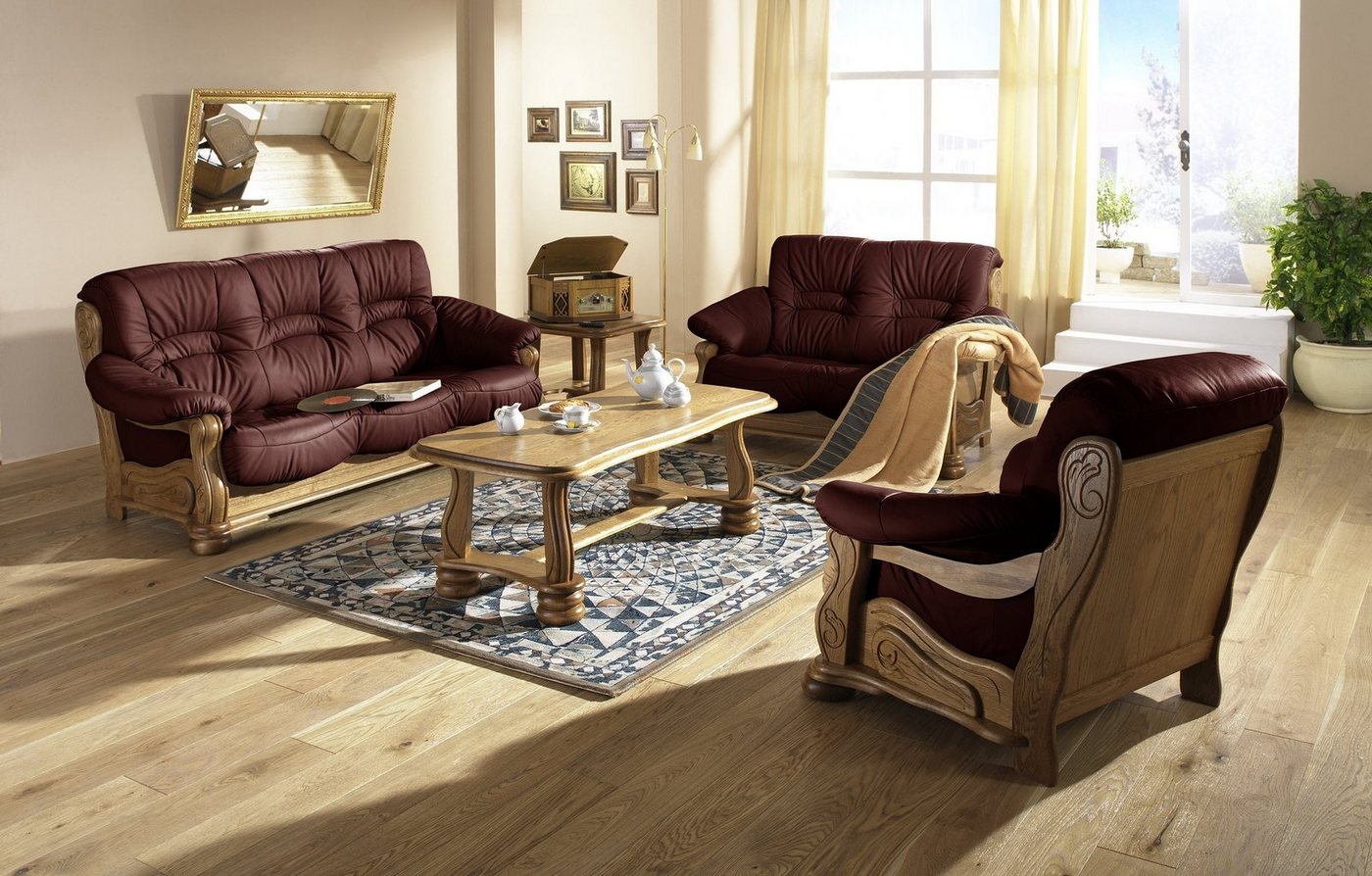 Sessel EchtlederRustikaler Sessel mit aufwändig gearbeitetem Sichtholzgestell mit eingelegter Sitzschale. Der Federkern im Sitz garanitert einen optimalen Sitzkomfort.