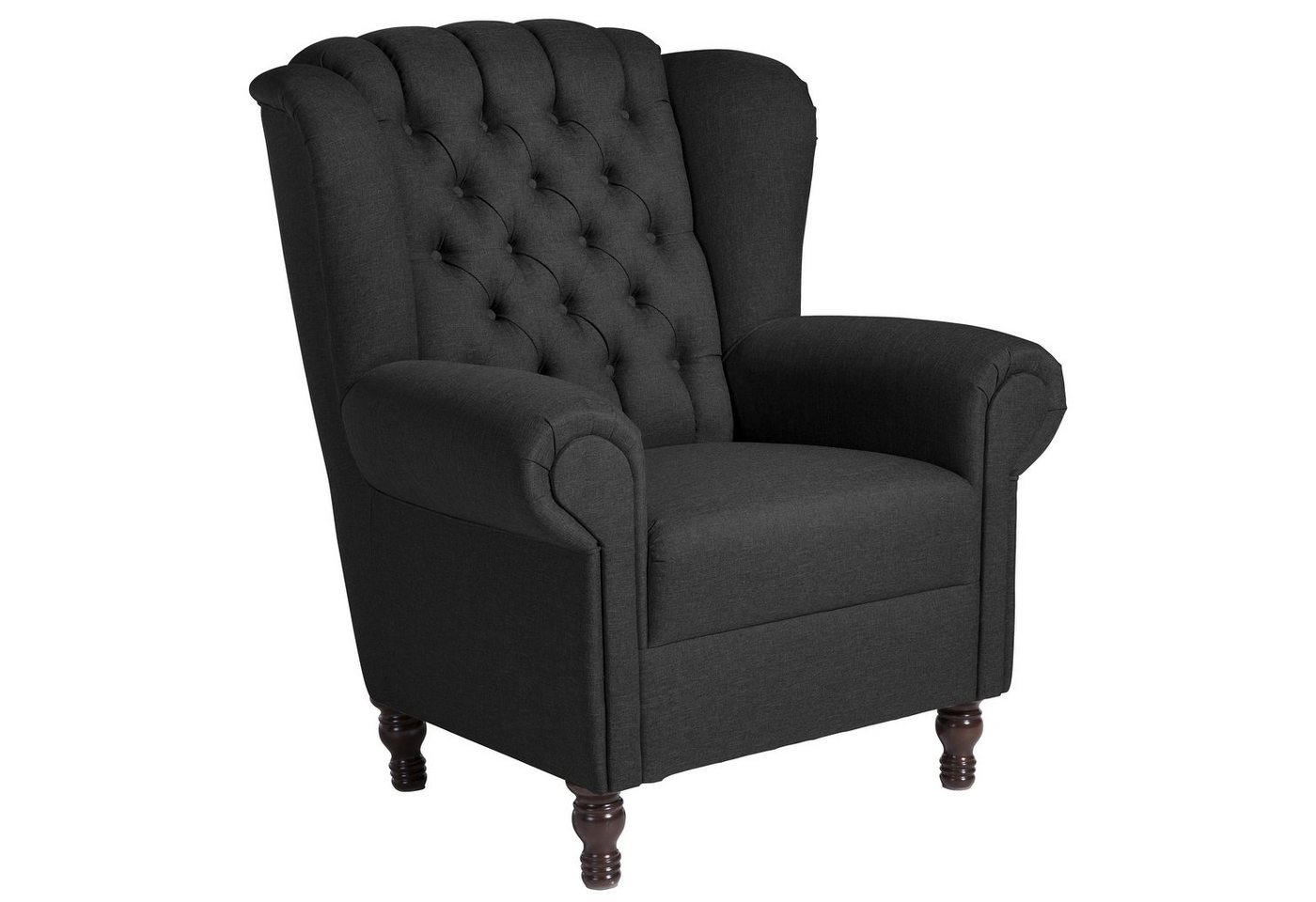 OhrenbackensesselEin repräsentativer Platz zum Lesen, Fernsehen und Entspannen. Sehr edler Ohrenbackensessel in klassischem Chesterfield-Look in Kombination mit modernen Farben und Materialien. Hergestellt in handwerklicher Wertarbeit. Mit schicker, aufwändiger Knopfheftung und geschwungenen Armlehnen für besondere Eleganz. Die Füße sind zur einfachen Selbstmontage.Scheuertouren: &gt, 100.000Pilling: 4 – 5Lichtechtheit: 4 – 5Reibechtheit (trocken): 4 – 5Reibechtheit (nass): 4 – 5