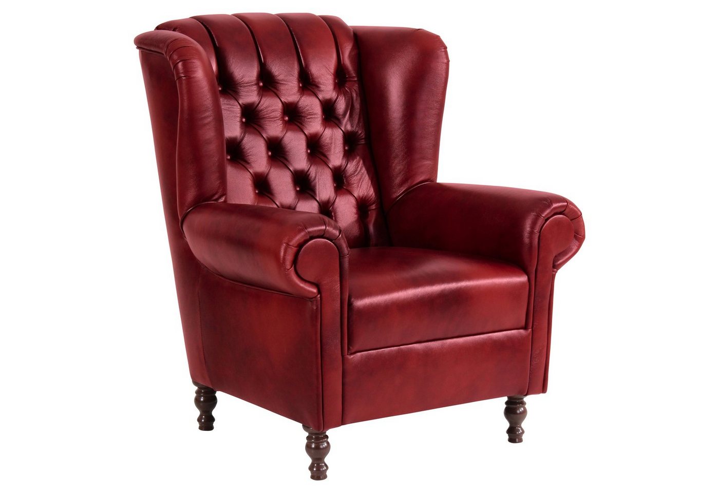 Ohrenbackensessel EchtlederEin repräsentativer Platz zum Lesen, Fernsehen und Entspannen. Sehr edler Ohrenbackensessel in klassischem Chesterfield-Look in Kombination mit modernen Farben und Materialien. Hergestellt in handwerklicher Wertarbeit. Mit schicker, aufwändiger Knopfheftung und geschwungenen Armlehnen für besondere Eleganz. Die Füße sind zur einfachen Selbstmontage.