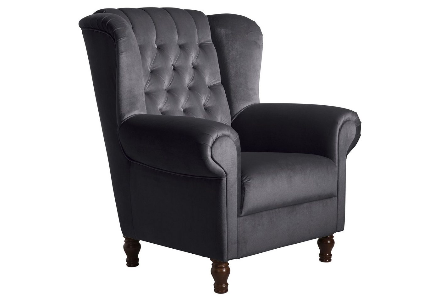 Ohrenbackensessel SamtEin repräsentativer Platz zum Lesen, Fernsehen und Entspannen. Sehr edler Ohrenbackensessel in klassischem Chesterfield-Look in Kombination mit modernen Farben und Materialien. Hergestellt in handwerklicher Wertarbeit. Mit schicker, aufwändiger Knopfheftung und geschwungenen Armlehnen für besondere Eleganz. Die Füße sind zur einfachen Selbstmontage.Scheuertouren: 100.000Pilling: 5Lichtechtheit: 5Reibechtheit (trocken): 5Reibechtheit (nass): 5Pflege: chemische Reinigung
